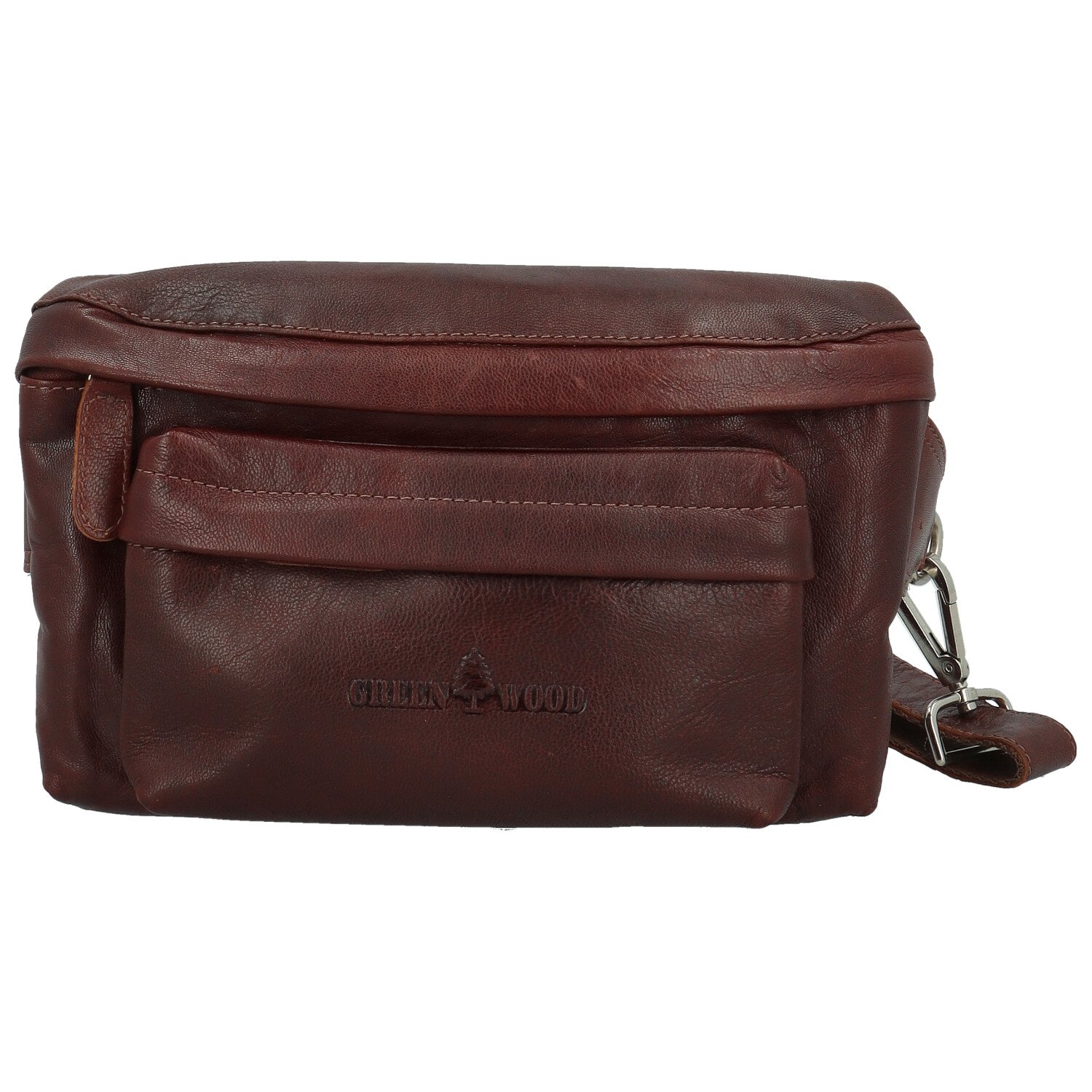 Je vyrobena z jemné, na dotek příjemné přírodní kůže s jemnou strukturou. Na přední straně se nachází elegantně vypouklá kapsa se schovaným zipem, která zachovává čistý vzhled modelu. Přímo na kapse je vyražené logo značky Greenwood.