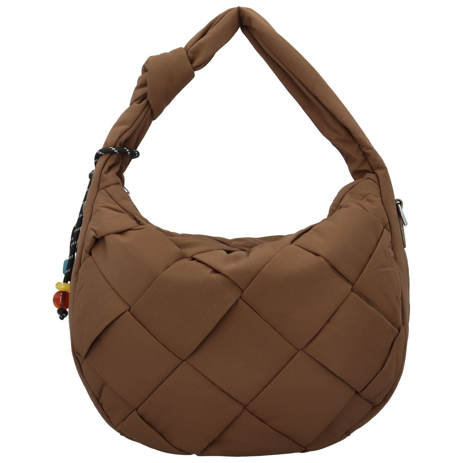 Přední strana je zdobena proplétaným vzorem, který jí dodává zajímavý vzhled. Širší uchu má stylový uzel, díky čemuž kabelka působí ležérně a trendy. Hlavní kapsa se zapíná na zip a uvnitř se nacházejí praktické kapsičky v podšívce. Na zadní straně je umístěna zipová kapsa pro drobnosti.