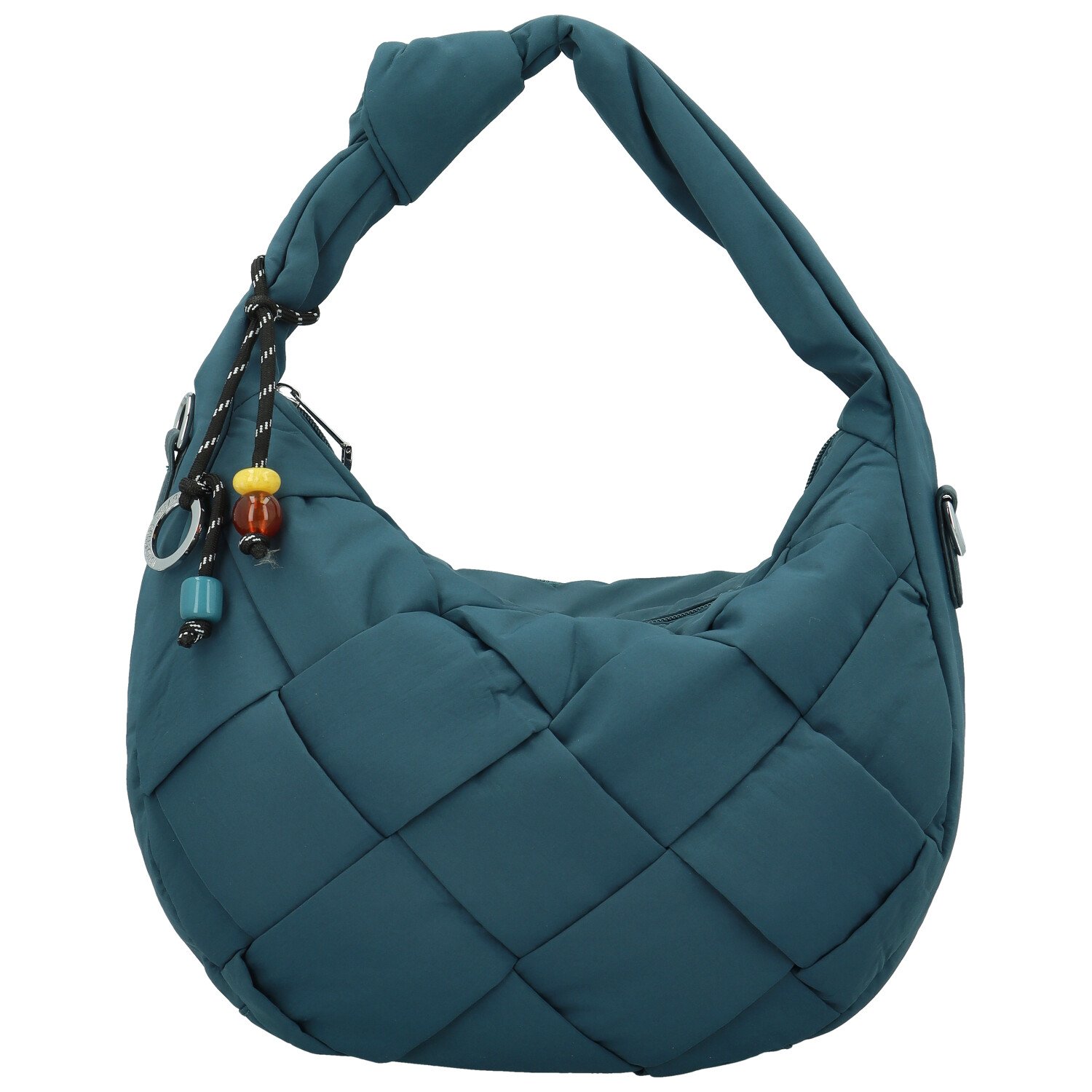 Přední strana je zdobena proplétaným vzorem, který jí dodává zajímavý vzhled. Širší uchu má stylový uzel, díky čemuž kabelka působí ležérně a trendy. Hlavní kapsa se zapíná na zip a uvnitř se nacházejí praktické kapsičky v podšívce. Na zadní straně je umístěna zipová kapsa pro drobnosti.
