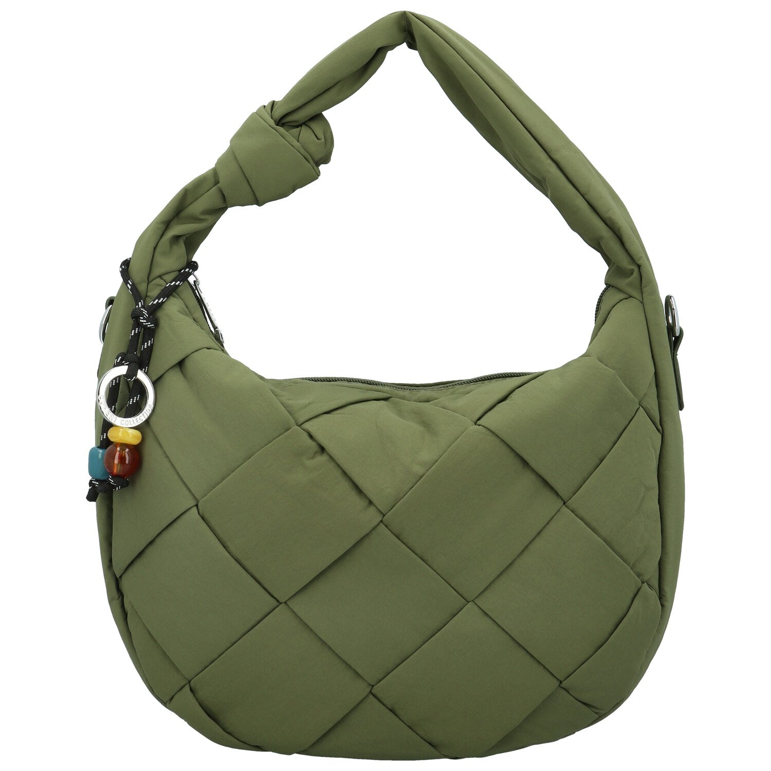 Přední strana je zdobena proplétaným vzorem, který jí dodává zajímavý vzhled. Širší uchu má stylový uzel, díky čemuž kabelka působí ležérně a trendy. Hlavní kapsa se zapíná na zip a uvnitř se nacházejí praktické kapsičky v podšívce. Na zadní straně je umístěna zipová kapsa pro drobnosti.