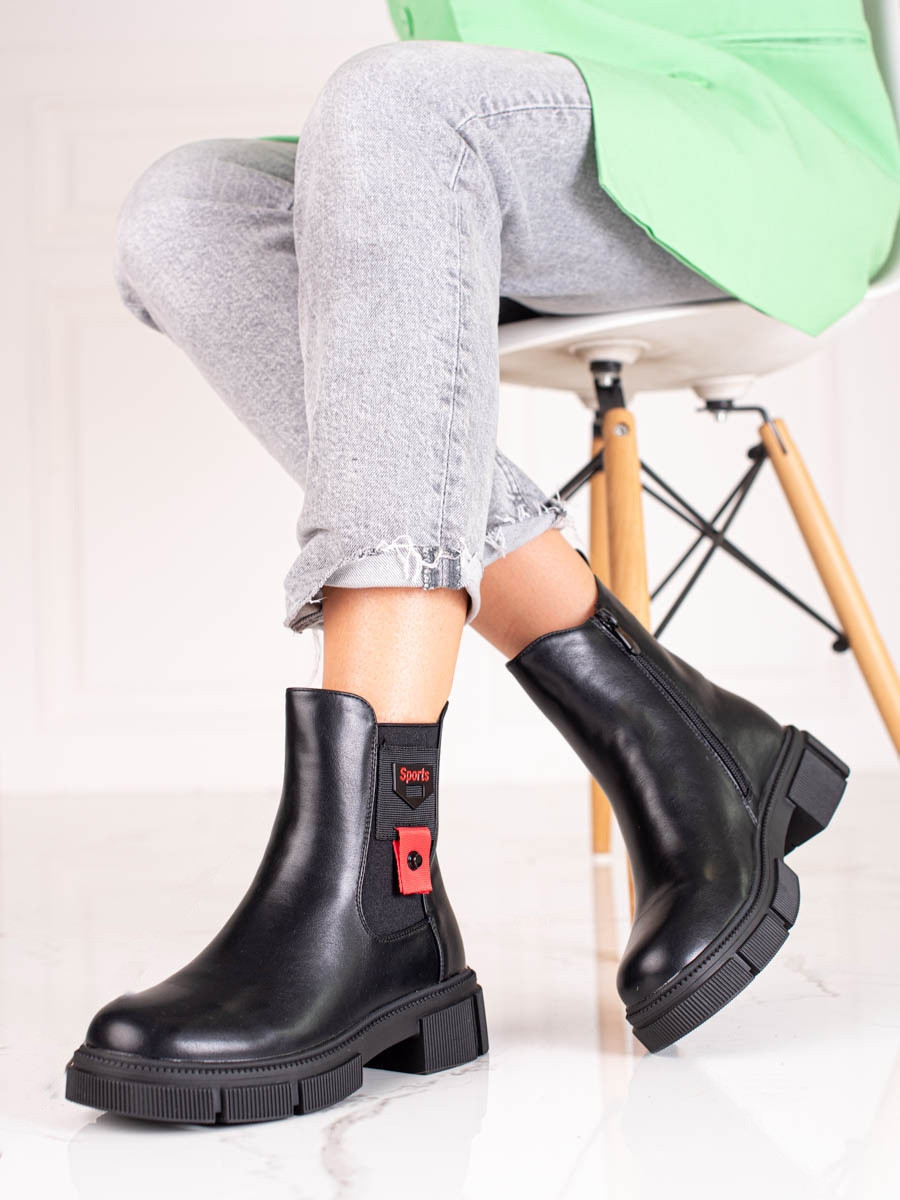 Moderní dámské černé kotníčkové boty na plochém podpatku 39