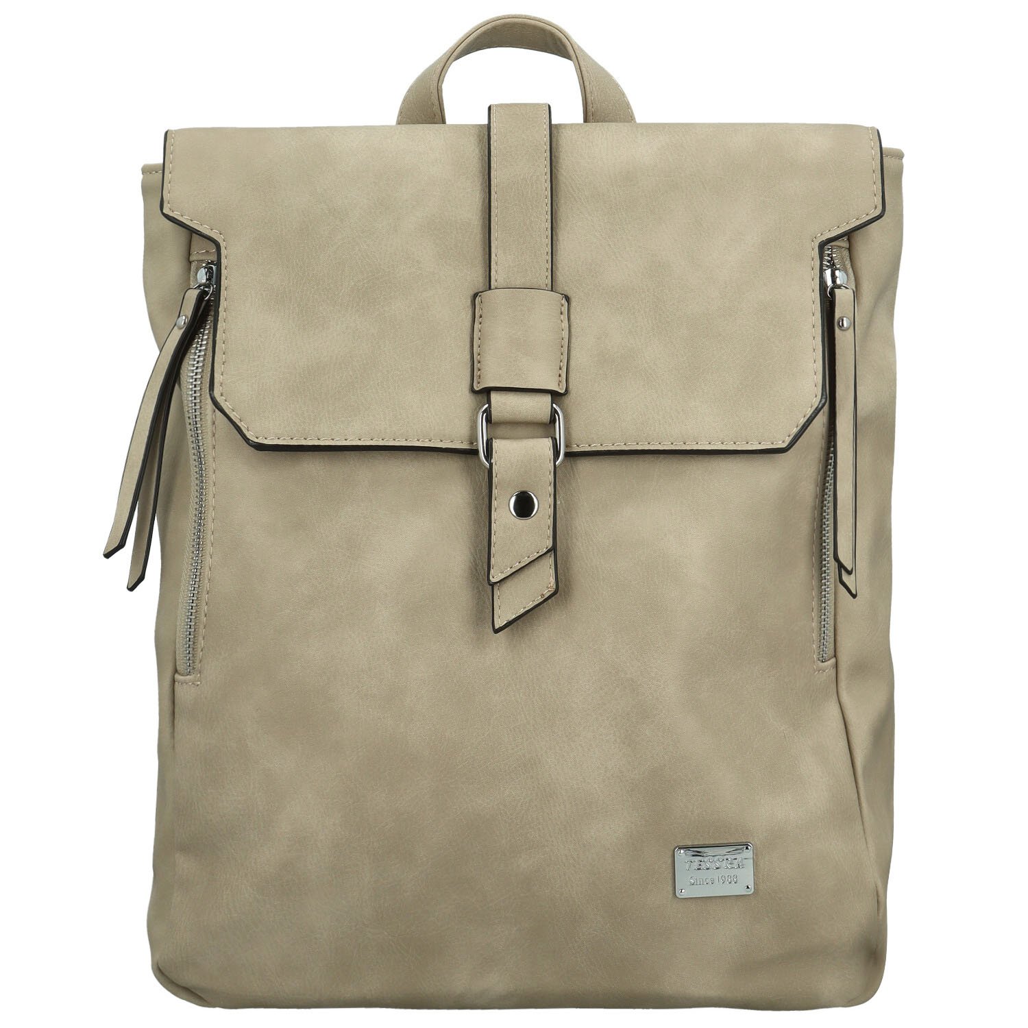 Stylový design s klopou a dekorativním páskem dodává batohu sofistikovaný vzhled. Praktické zapínání na magnet a zip zajišťuje bezpečnost uložených věcí. Vnitřní prostor je přehledně členěn, obsahuje středovou kapsu na zip, která odděluje dvě hlavní části pro lepší organizaci obsahu.