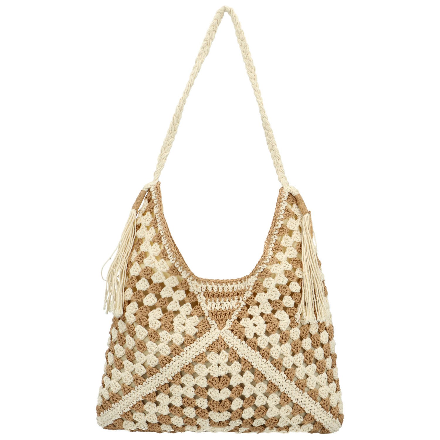 Módní dámská boho kabelka na rameno Ibolya, béžovo-krémová