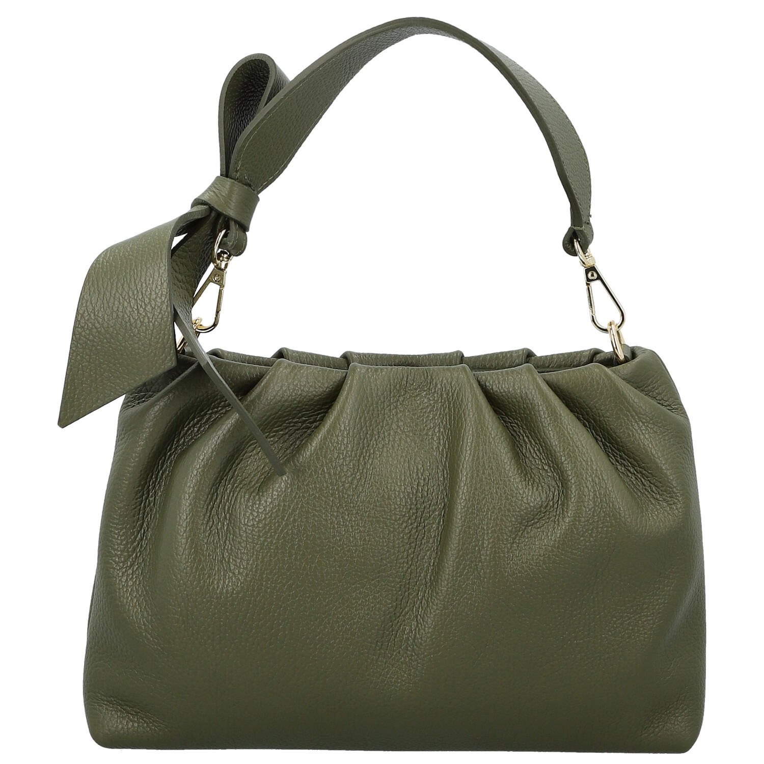 Hlavní kapsa je uzavíratelná zipem, takže všechny vaše drobnosti zůstanou v bezpečí. Kabelka se pohodlně nosí v ruce díky kratšímu odepínacímu popruhu, který zdobí stylová kožená mašle. Drobný, ale okouzlující detail, který upoutá na první pohled.