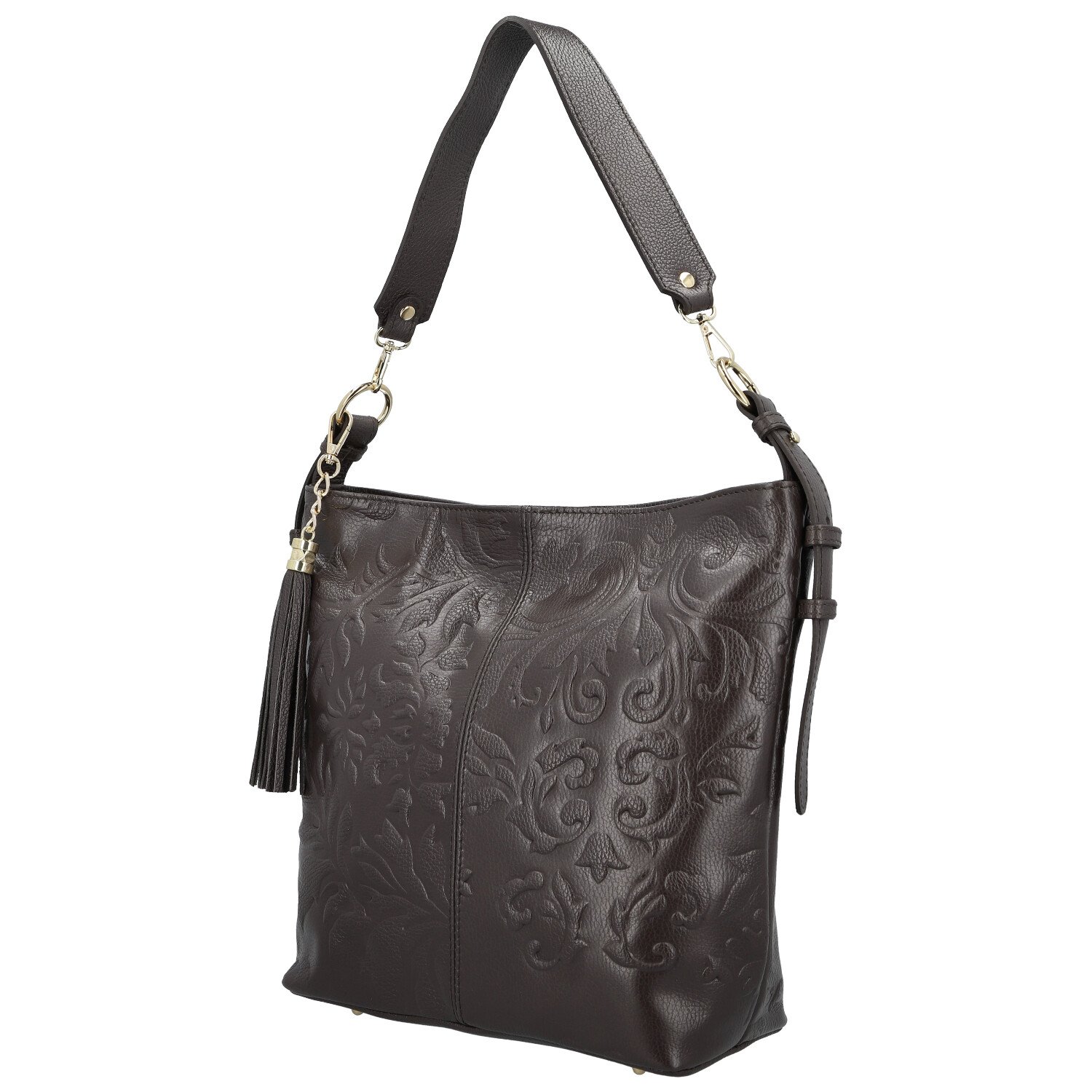 Jemné ornamenty dodávají kabelce jedinečný charakter a nádech luxusu. Kvalitní hladká kůže působí sofistikovaně, zatímco zlaté kování podtrhuje její ženský styl. Hlavní kapsa je uzavíratelná na zip a uvnitř se ukrývají praktické kapsičky v podšívce pro přehledné uspořádání drobností.