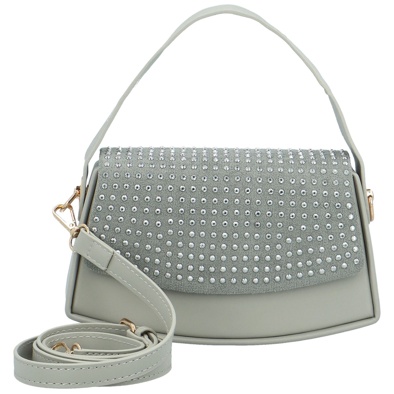 Přední stranu zdobí krásná designová klopa která je vykládaná kamínky, které se krásně třpytí. Kabelka pevně drží svůj tvar a po otevření klopy se vám nabídne otevřený prostor, pro vaše nejnutnější věci.