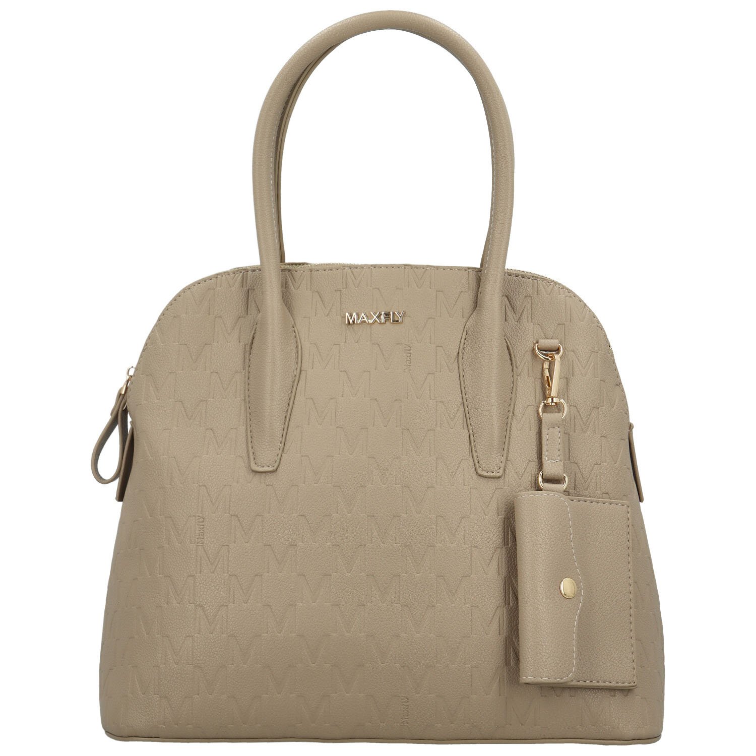 Celý povrch kabelky zdobí jemně vyražený motiv písmene M, který podtrhuje její jedinečný design. Na přední straně je umístěno logo značky MaxFly ve zlaté barvě a praktická malá odnímatelná kapsička na drobné mince, která zároveň slouží jako stylový doplněk.