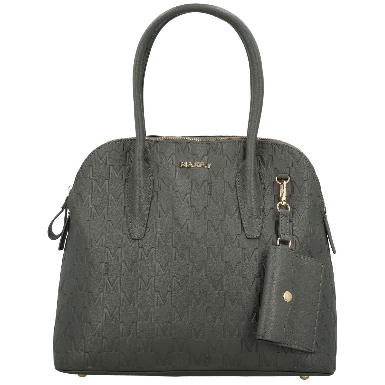 Celý povrch kabelky zdobí jemně vyražený motiv písmene M, který podtrhuje její jedinečný design. Na přední straně je umístěno logo značky MaxFly ve zlaté barvě a praktická malá odnímatelná kapsička na drobné mince, která zároveň slouží jako stylový doplněk.