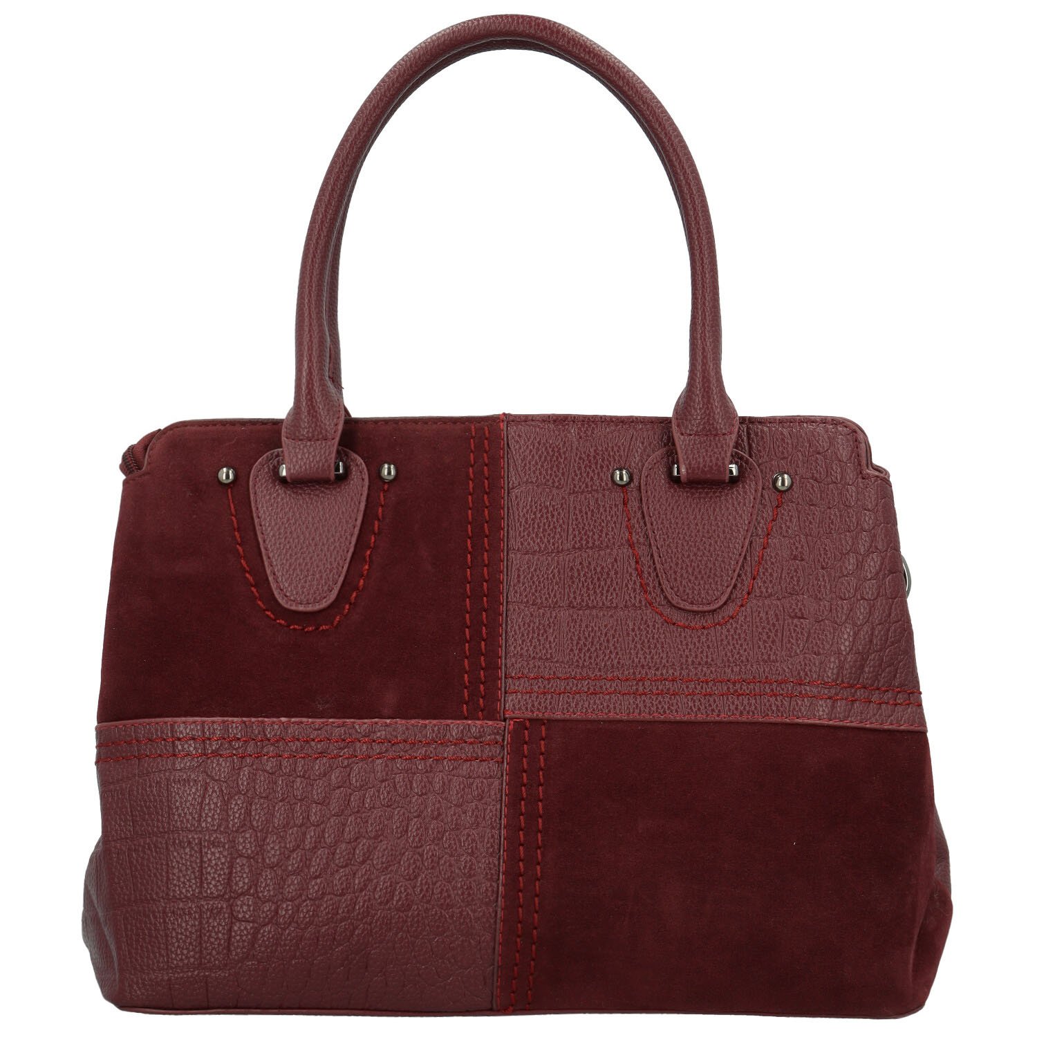Přední část je rozdělena do obdélníků, přičemž šikmé protilehlé díly jsou vyrobeny z odlišných struktur - semišové koženky a hadího vzoru. Tento kontrast vytváří zajímavý a moderní vzhled. Zadní strana je naopak hladká a doplněná o praktickou kapsičku na zip.