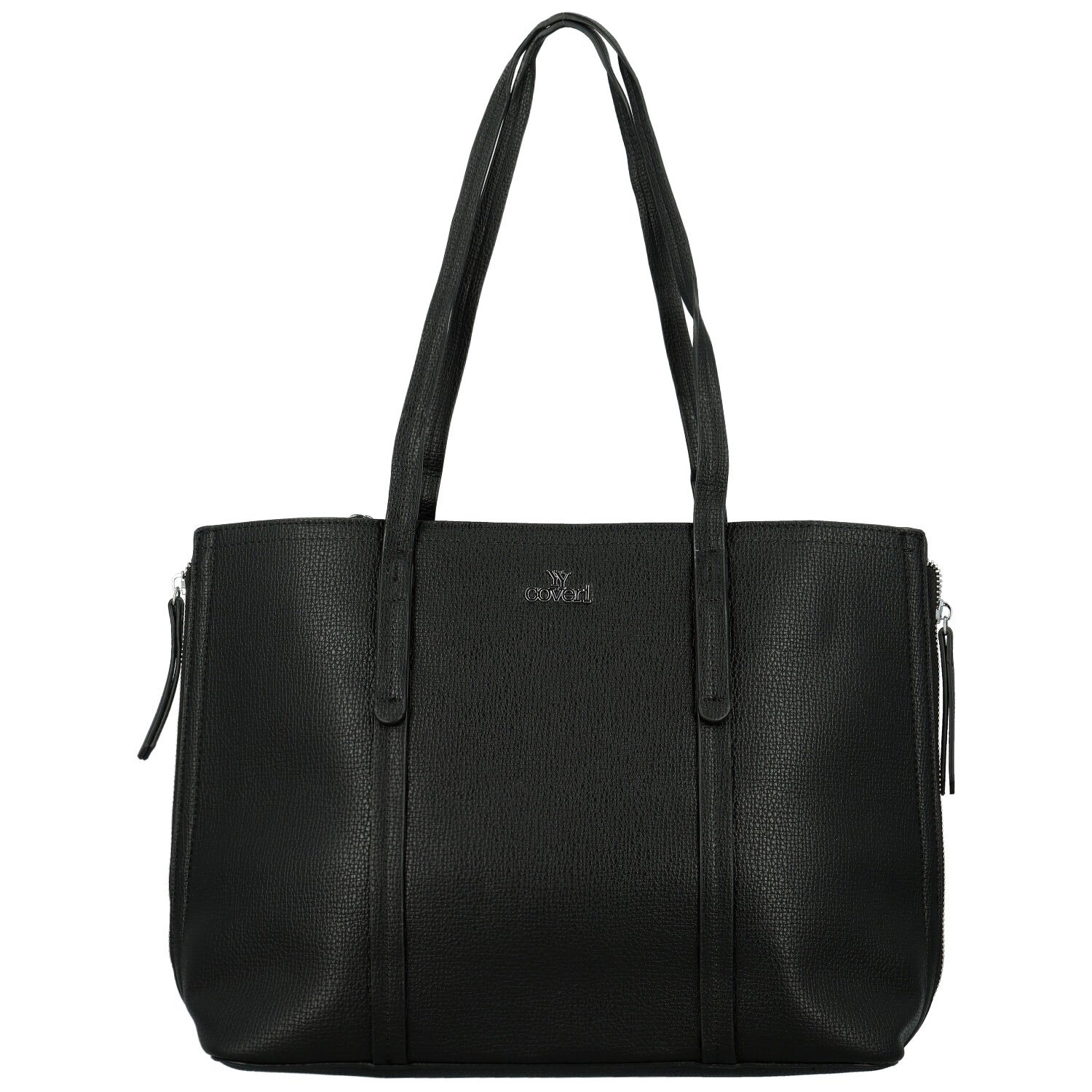 Přední část zdobí elegantní svislé pruhy táhnoucí se od uch až dolů, které dodávají kabelce šmrnc a dynamiku. Pevná ucha jsou dlouhá přesně na rameno, pro pohodlné nošení. Hlavní kapsa na zip nabízí bezpečný prostor, uvnitř najdete menší kapsičky pro drobnosti.