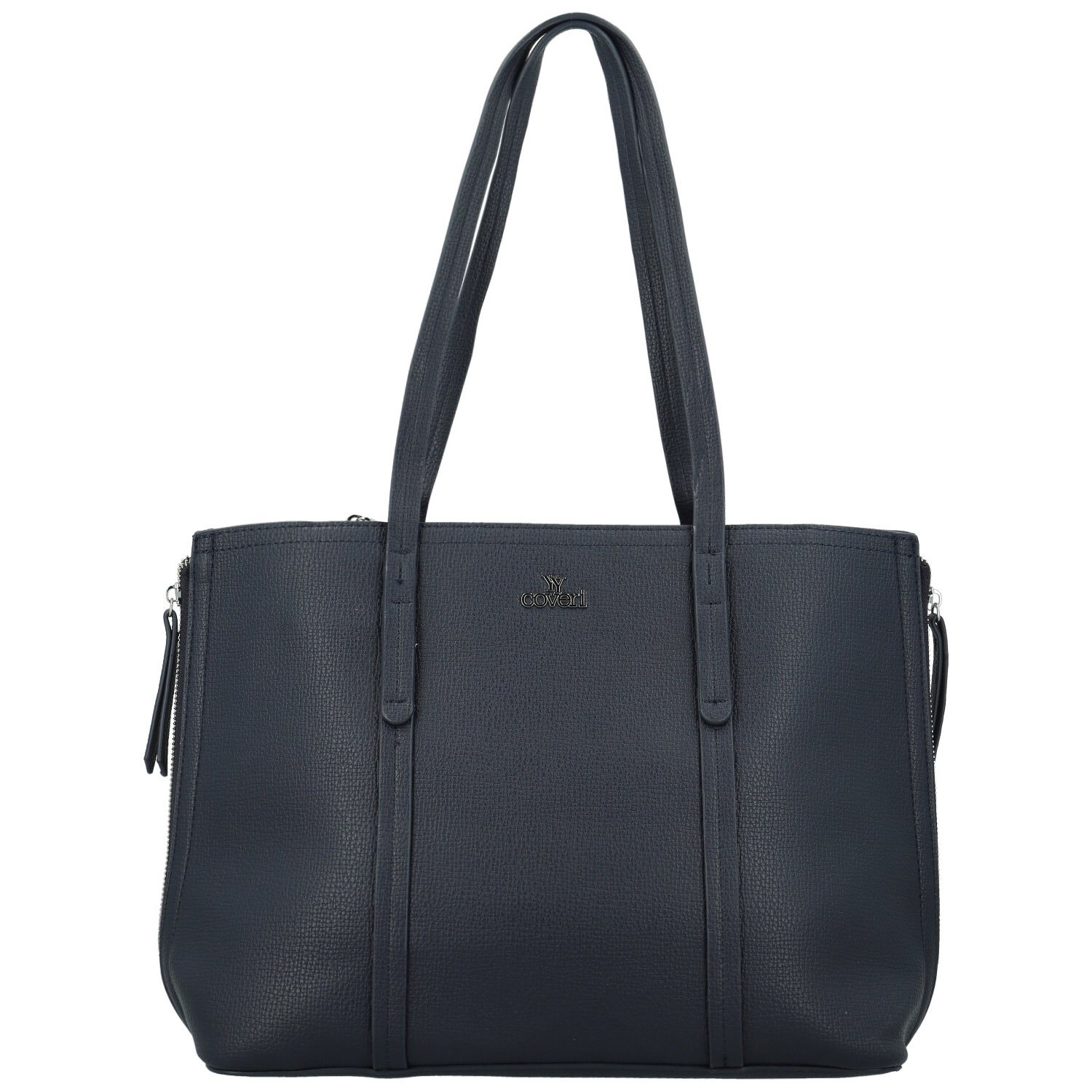 Přední část zdobí elegantní svislé pruhy táhnoucí se od uch až dolů, které dodávají kabelce šmrnc a dynamiku. Pevná ucha jsou dlouhá přesně na rameno, pro pohodlné nošení. Hlavní kapsa na zip nabízí bezpečný prostor, uvnitř najdete menší kapsičky pro drobnosti.