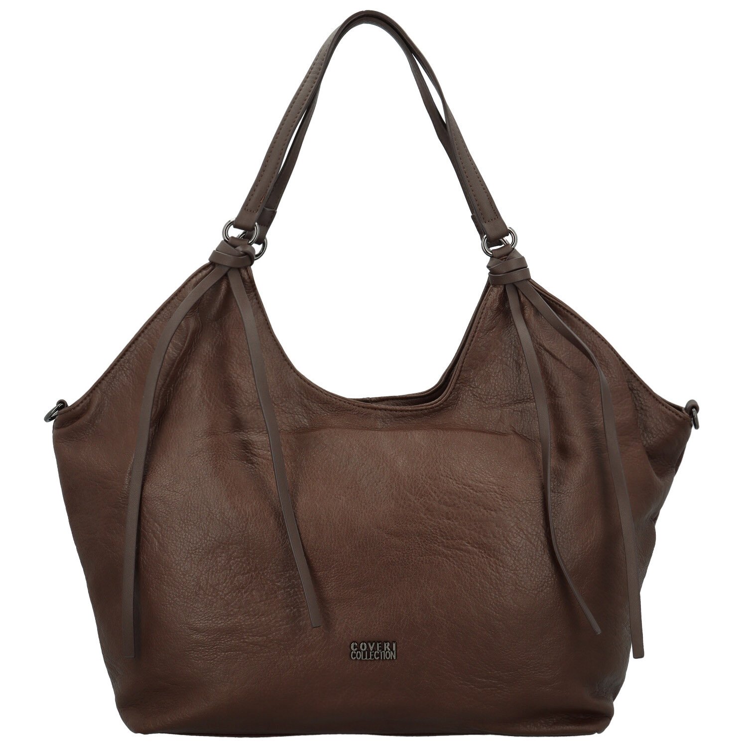 Na přední straně kabelky vyniká jemně zvrásněná koženka, která působí elegantně a nadčasově. U uch jsou ozdobné řemínky provlečené kovovými kroužky, které dodávají kabelce stylový detail. Hlavní prostor kabelky se zapíná na zip a uvnitř je podšívka s organizovaným uspořádáním.