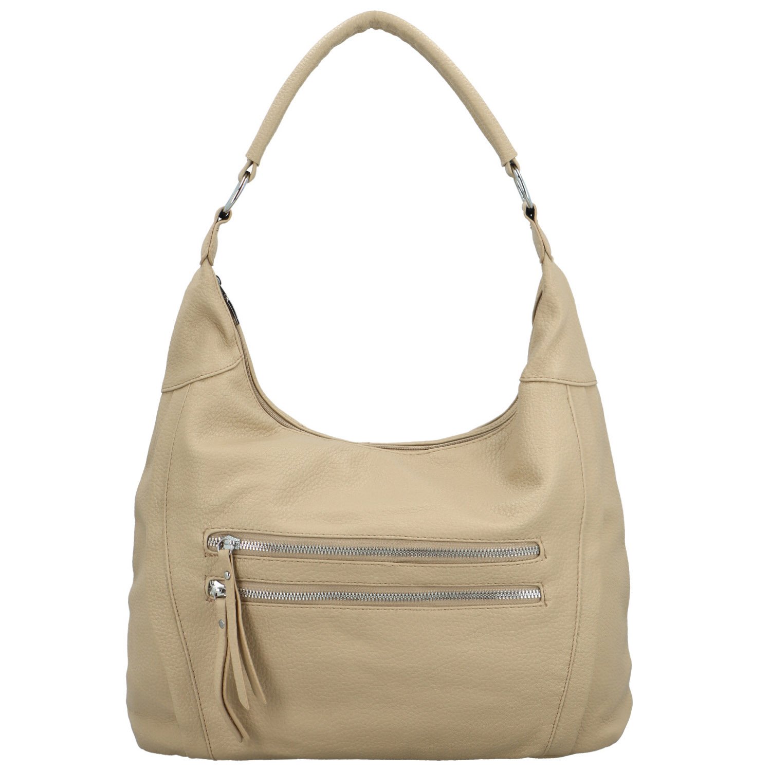 Tato moderní kabelka je módním kouskem, je prostorná a ideální k nošení do města i do práce. Přední stranu zdobí dvě zipové kapsy ve stříbrné barvě. I na zadní straně najdete zipovou kapsu pro drobnosti. Hlavní kapsy má hned dvě a také se dají uzavřít zipy.