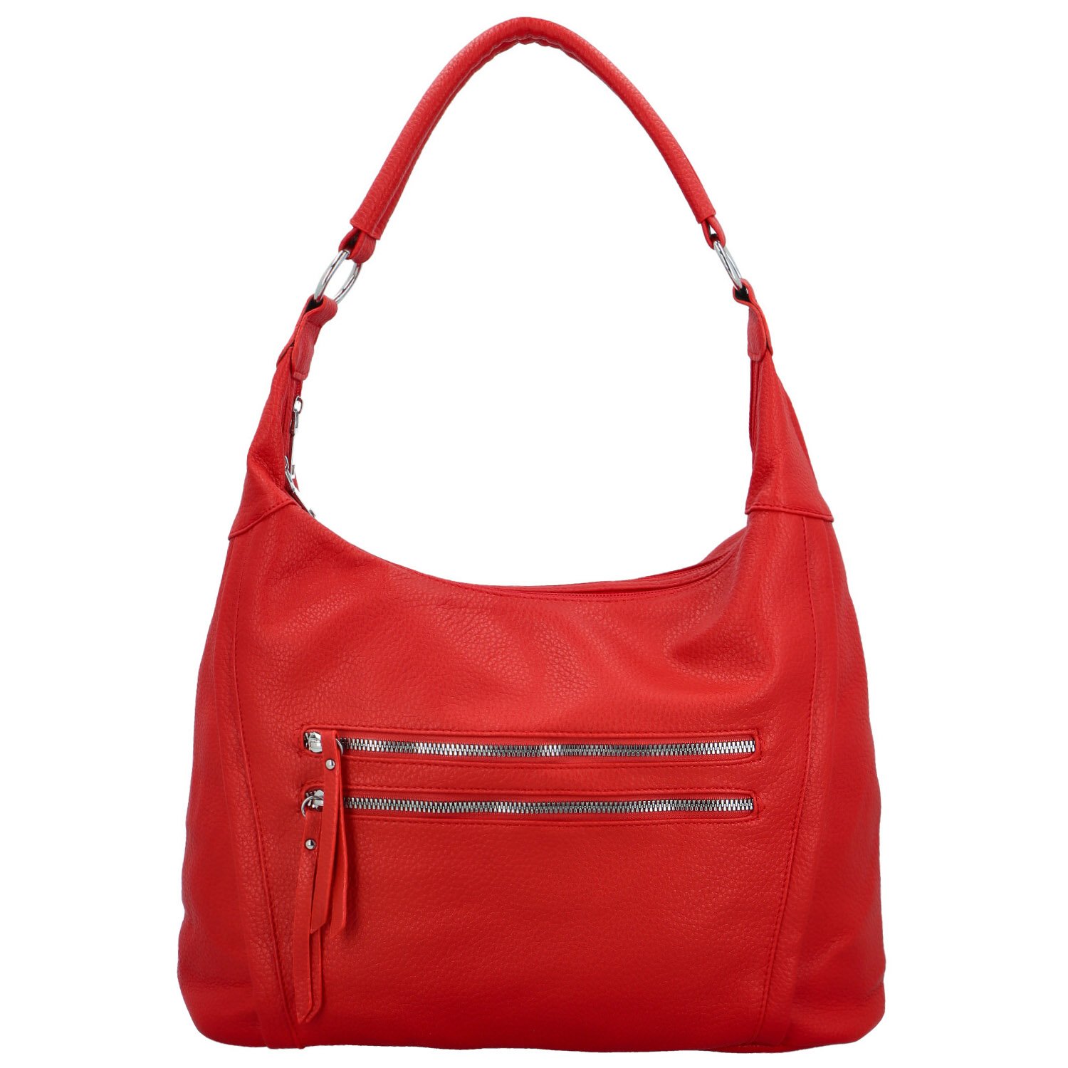 Tato moderní kabelka je módním kouskem, je prostorná a ideální k nošení do města i do práce. Přední stranu zdobí dvě zipové kapsy ve stříbrné barvě. I na zadní straně najdete zipovou kapsu pro drobnosti. Hlavní kapsy má hned dvě a také se dají uzavřít zipy.