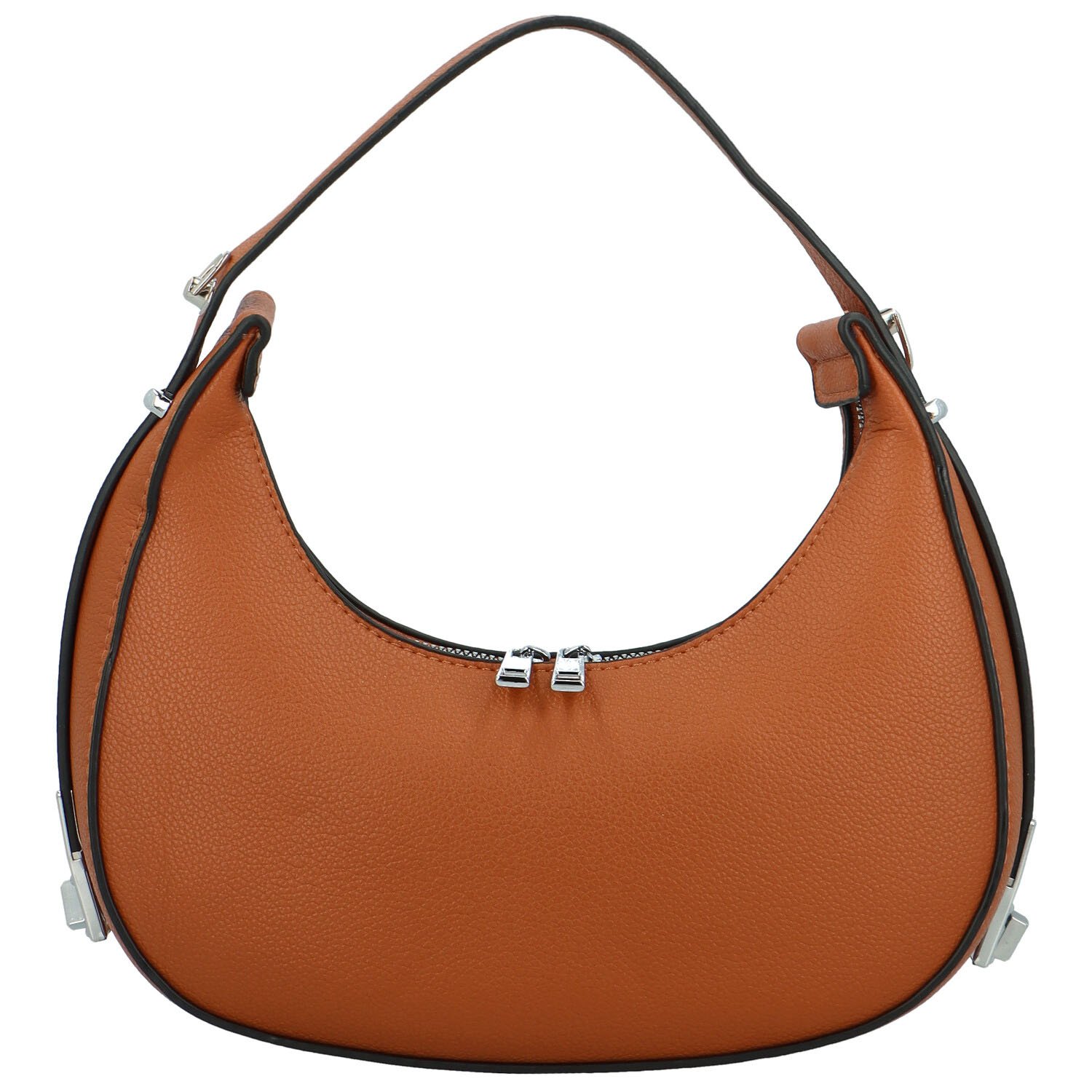 Kabelka je z obou stran stejná, má krásné černé lemování, které kabelku oživuje společně se stříbrným kováním. Pevné ucho poslouží k nošení na rameni či v ruce a dlouhý nastavitelný popruh, který je na připnutí k nošení na rameni či do kříže.
