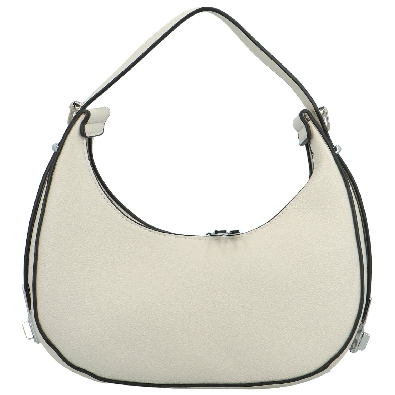 Kabelka je z obou stran stejná, má krásné černé lemování, které kabelku oživuje společně se stříbrným kováním. Pevné ucho poslouží k nošení na rameni či v ruce a dlouhý nastavitelný popruh, který je na připnutí k nošení na rameni či do kříže.