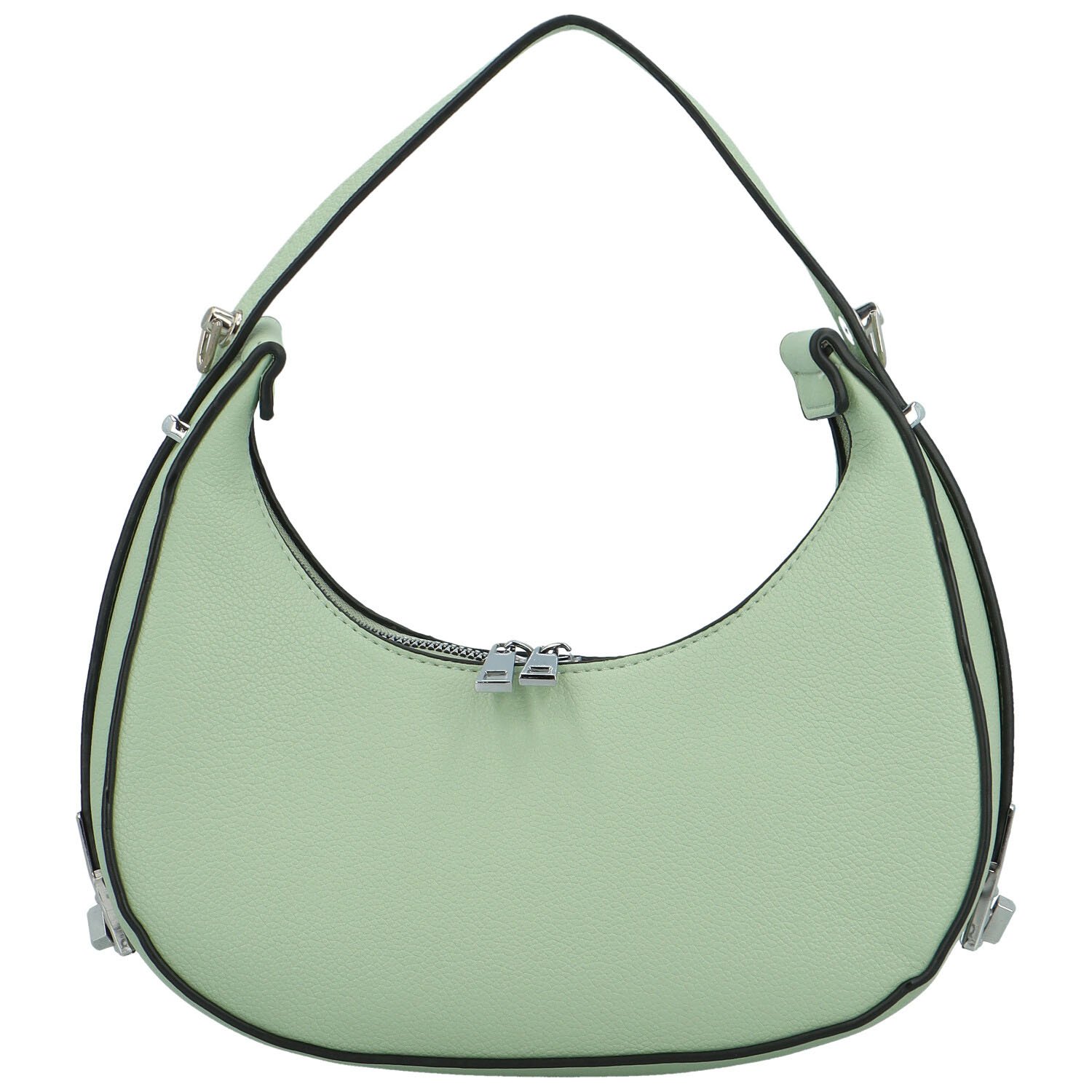 Kabelka je z obou stran stejná, má krásné černé lemování, které kabelku oživuje společně se stříbrným kováním. Pevné ucho poslouží k nošení na rameni či v ruce a dlouhý nastavitelný popruh, který je na připnutí k nošení na rameni či do kříže.