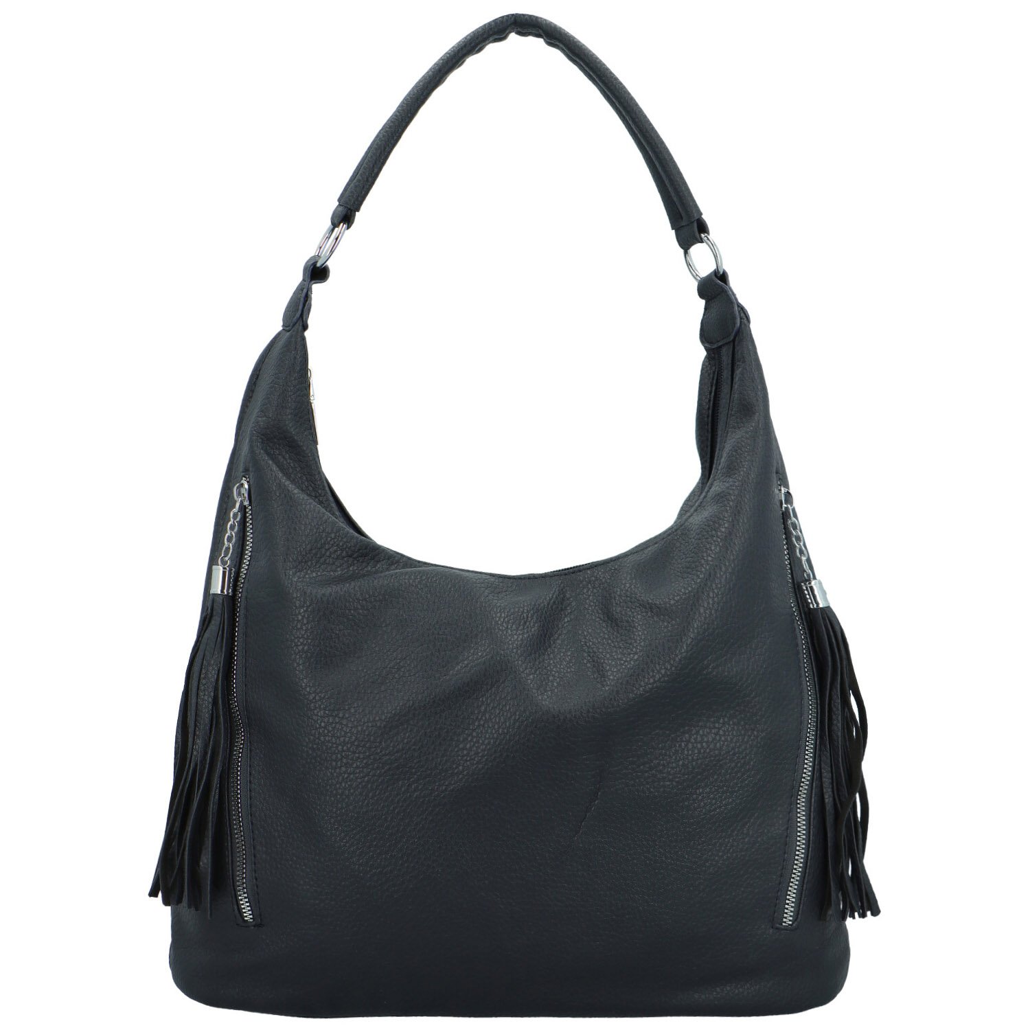 Tato taška je velmi šikovná, má hned dvě hlavní kapsy do kterých si můžete vše krásně rozvrhnout, k tomu vám poslouží i menší kapsičky uvnitř. Přední stranu zdobí dvě svislé zipové kapsy s ozdobnými třásněmi.