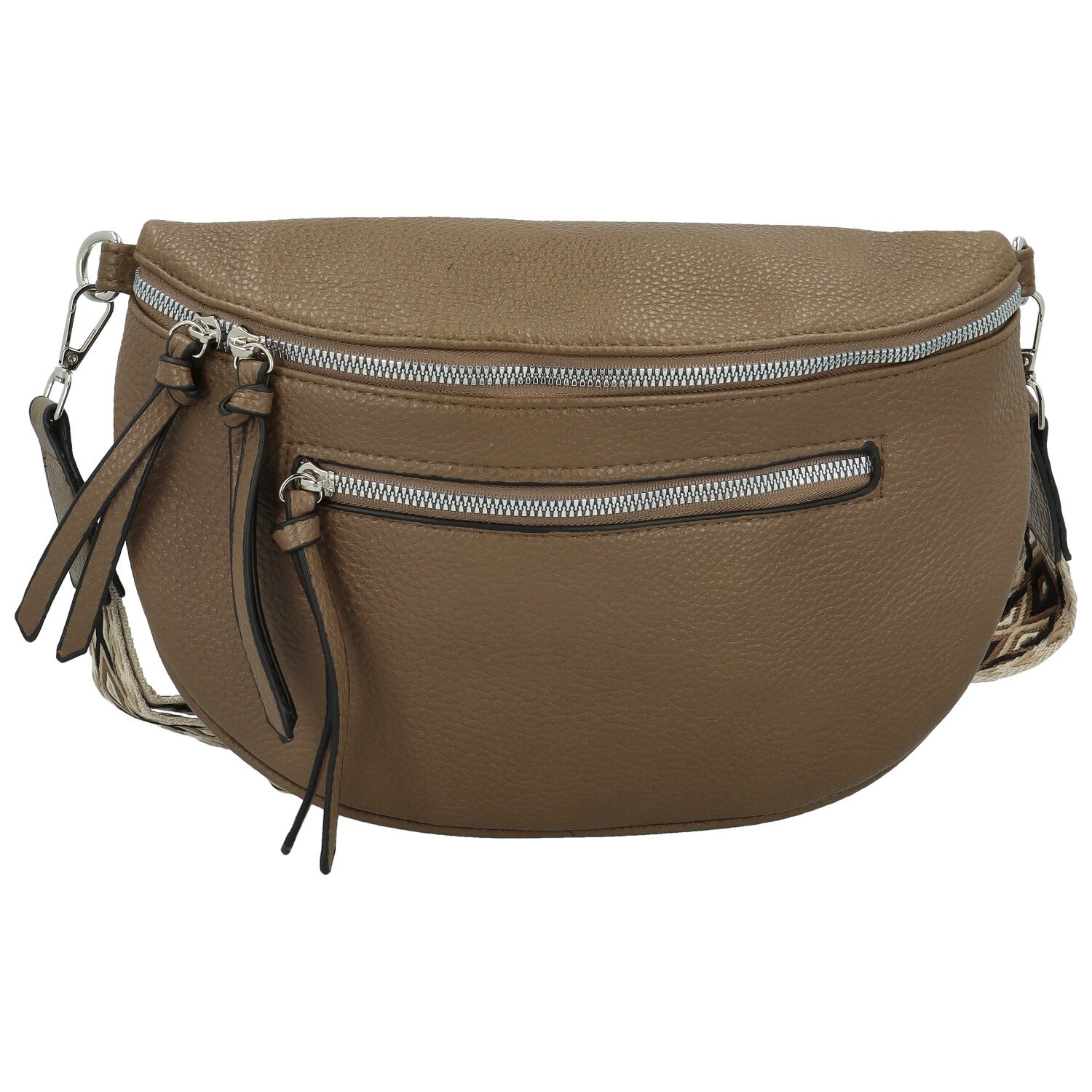 Hlavní kapsa se uzavírá stříbrným zipem a uvnitř se nachází zipová kapsička všitá do podšívky, pro bezpečné uložení drobností. Přední stranu doplňuje menší zipová kapsa rovněž se stříbrným zipem, která dodává modelu sportovně-elegantní vzhled.