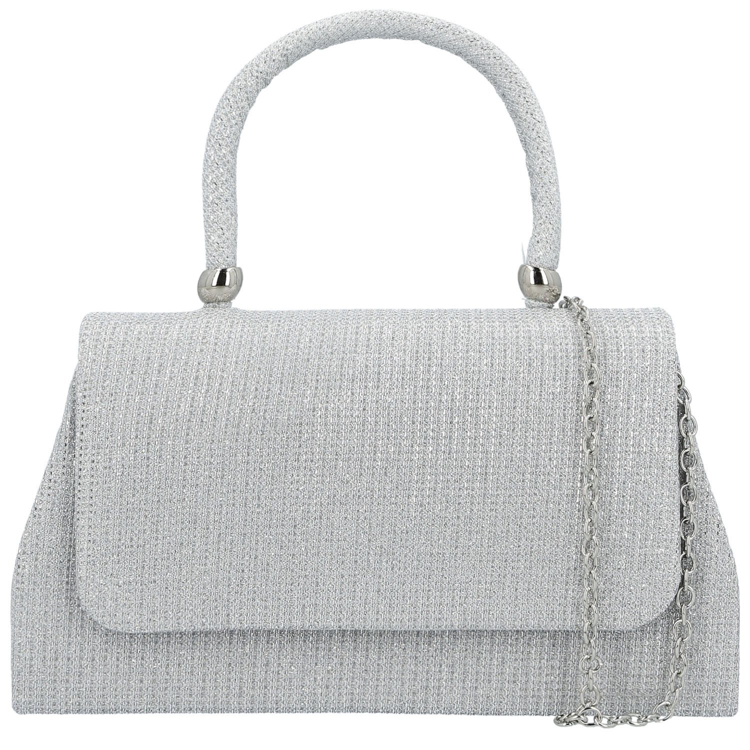 Kabelka má rovně zakončenou klopu, což podtrhuje její čistý, moderní vzhled. Pro pohodlné nošení v ruce je vybaven pevným uchem, jehož konce zdobí dekorativní kovové kroužky - elegantní detail, který doplňuje její slavnostní charakter.