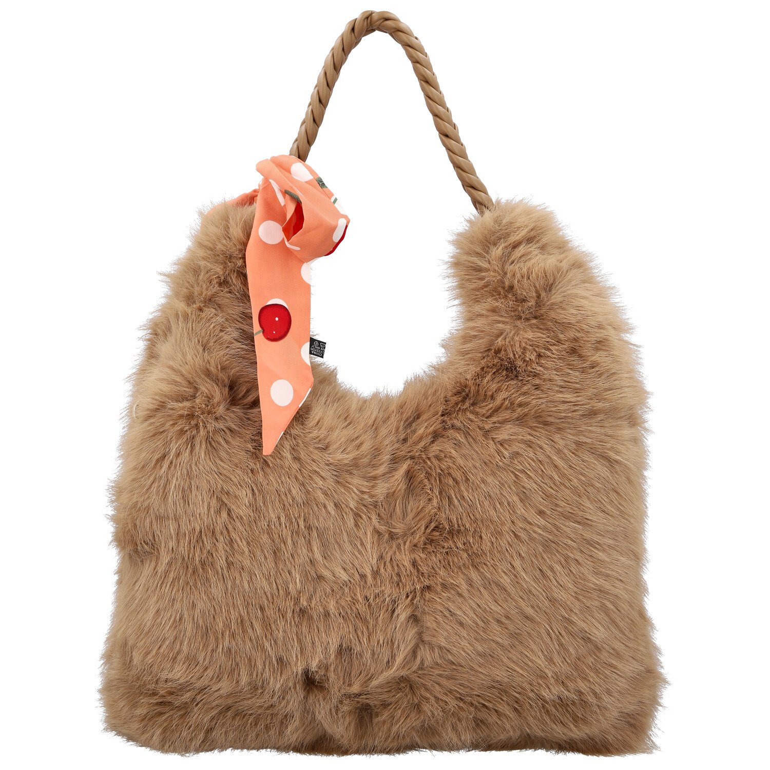 Módní dámská plyšová kabelka do ruky Raiga, camel