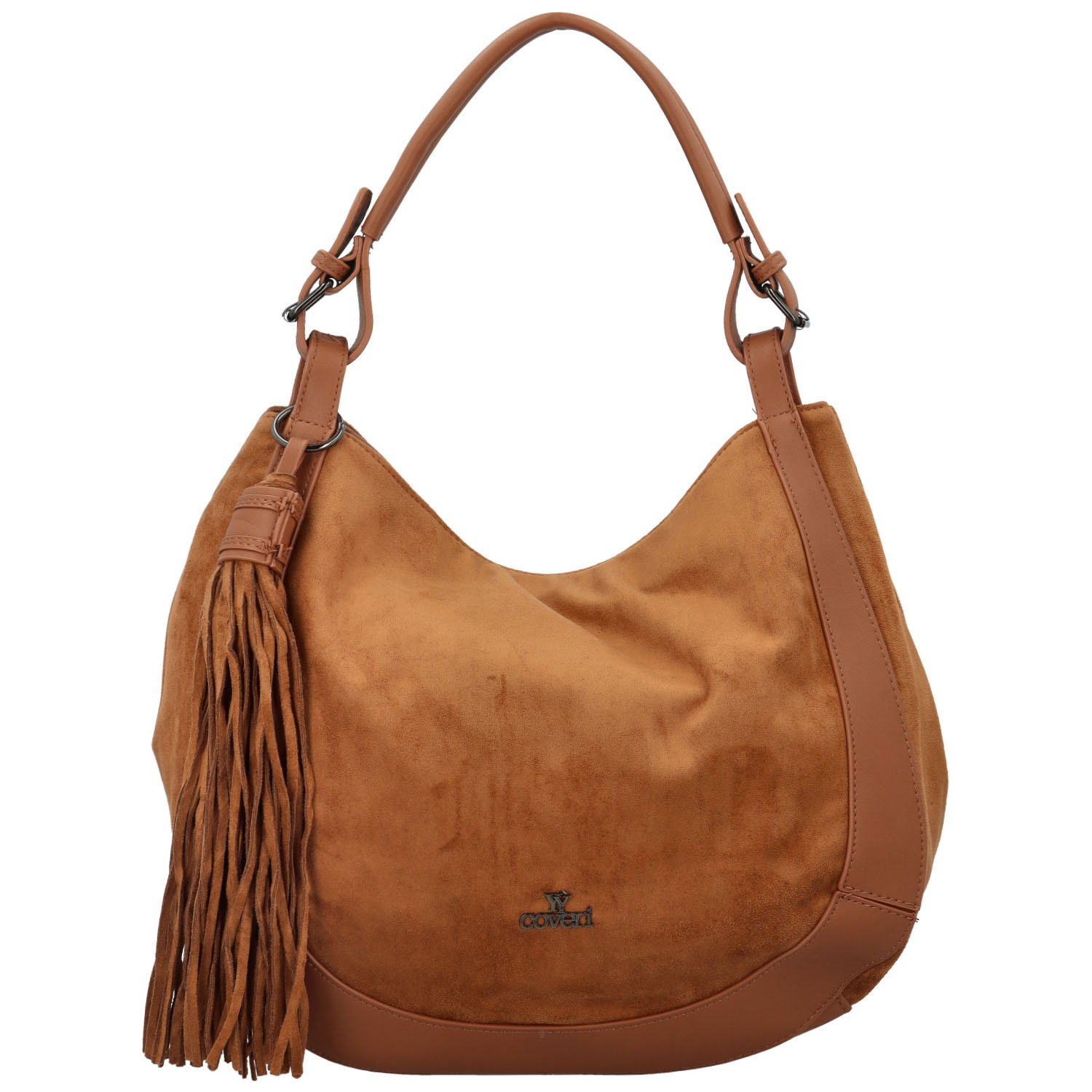 Jemný semišový povrch doplňují koženkové prvky - pevné ucho a zaoblené pruhy na přední i zadní straně, které dodávají kabelce šmrnc i pevnější tvar. Přední část zdobí výrazný semišový střapec, jenž kabelce propůjčuje elegantně hravý detail.