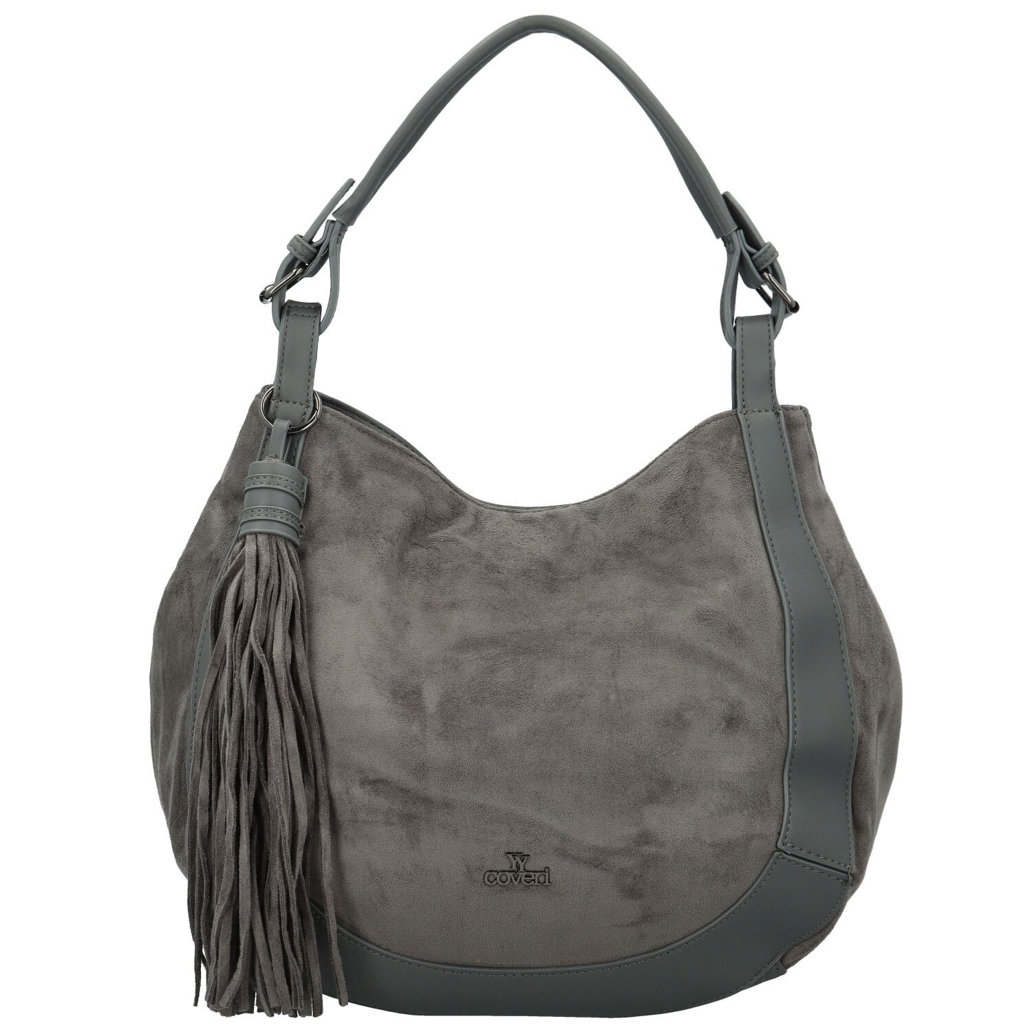 Jemný semišový povrch doplňují koženkové prvky - pevné ucho a zaoblené pruhy na přední i zadní straně, které dodávají kabelce šmrnc i pevnější tvar. Přední část zdobí výrazný semišový střapec, jenž kabelce propůjčuje elegantně hravý detail.