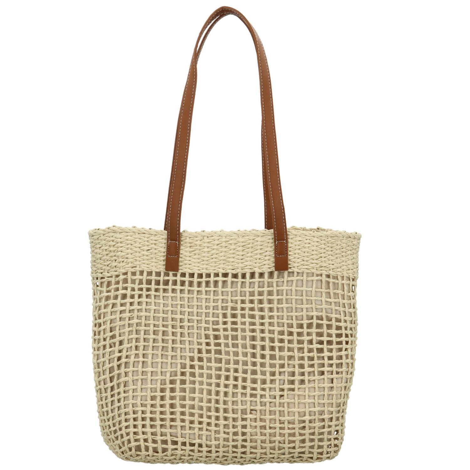 Povrch kabelky zdobí výrazný pletený design, který působí velmi vzdušně. Dlouhá koženková ucha z kvalitní koženky v kontrastním hnědém odsínu umožňují pohodlné nošení na rameni i v ruce a zároveň podtrhují celkový elegantní vzhled.