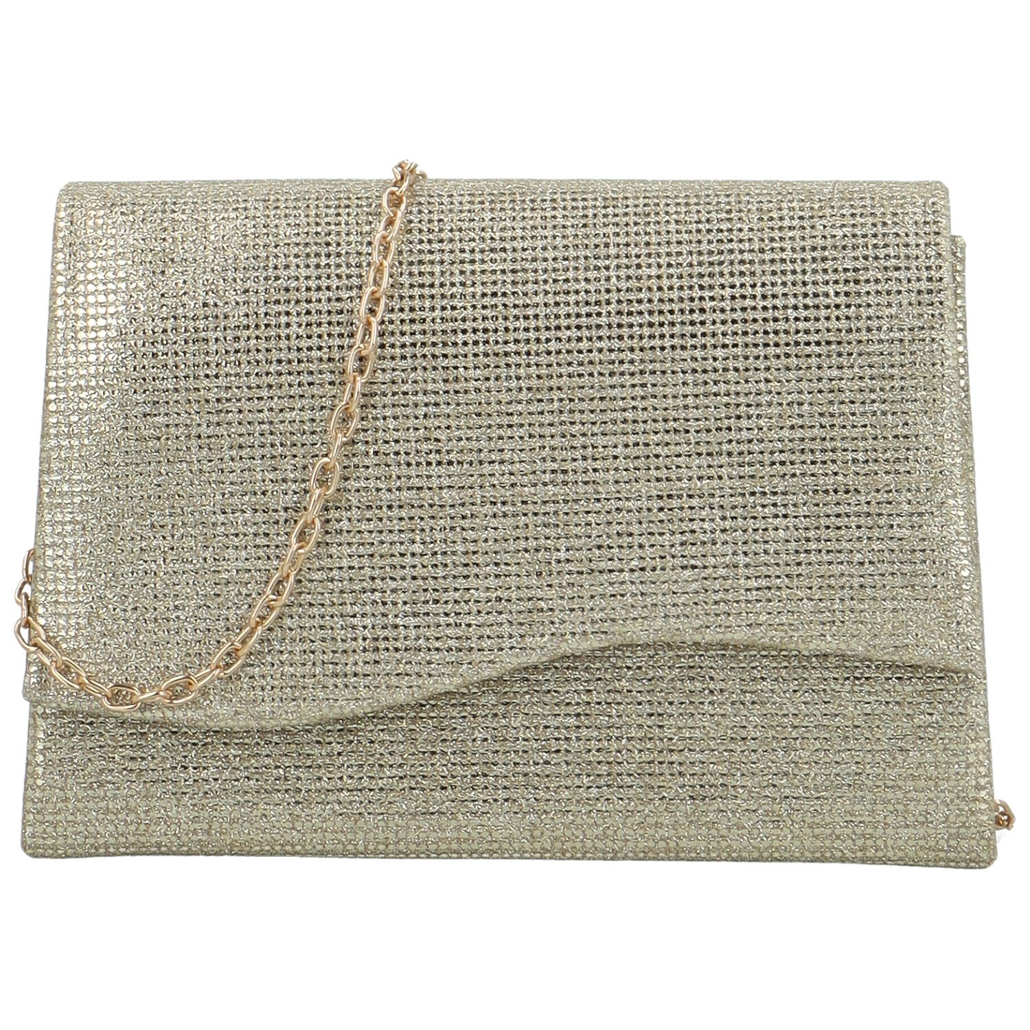 Psaníčko je potažené třpytivou látkou. Má menší vlnitou klopu a uvnitř dostatek místa na vaše osobní věci. Krásně vám bude sedět v ruce ale i na rameni po připnutí dlouhého řetízku.