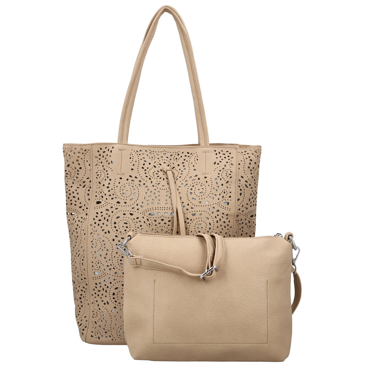 Velká kabelka zaujme jemně děrovaným designem, který dodává modelu vzdušnost a moderní vzhled, zatímco zadní plná část zajišťuje pevnost a odolnost. Dlouhá ucha na rameno zajistí pohodlné nošení po celý den.
