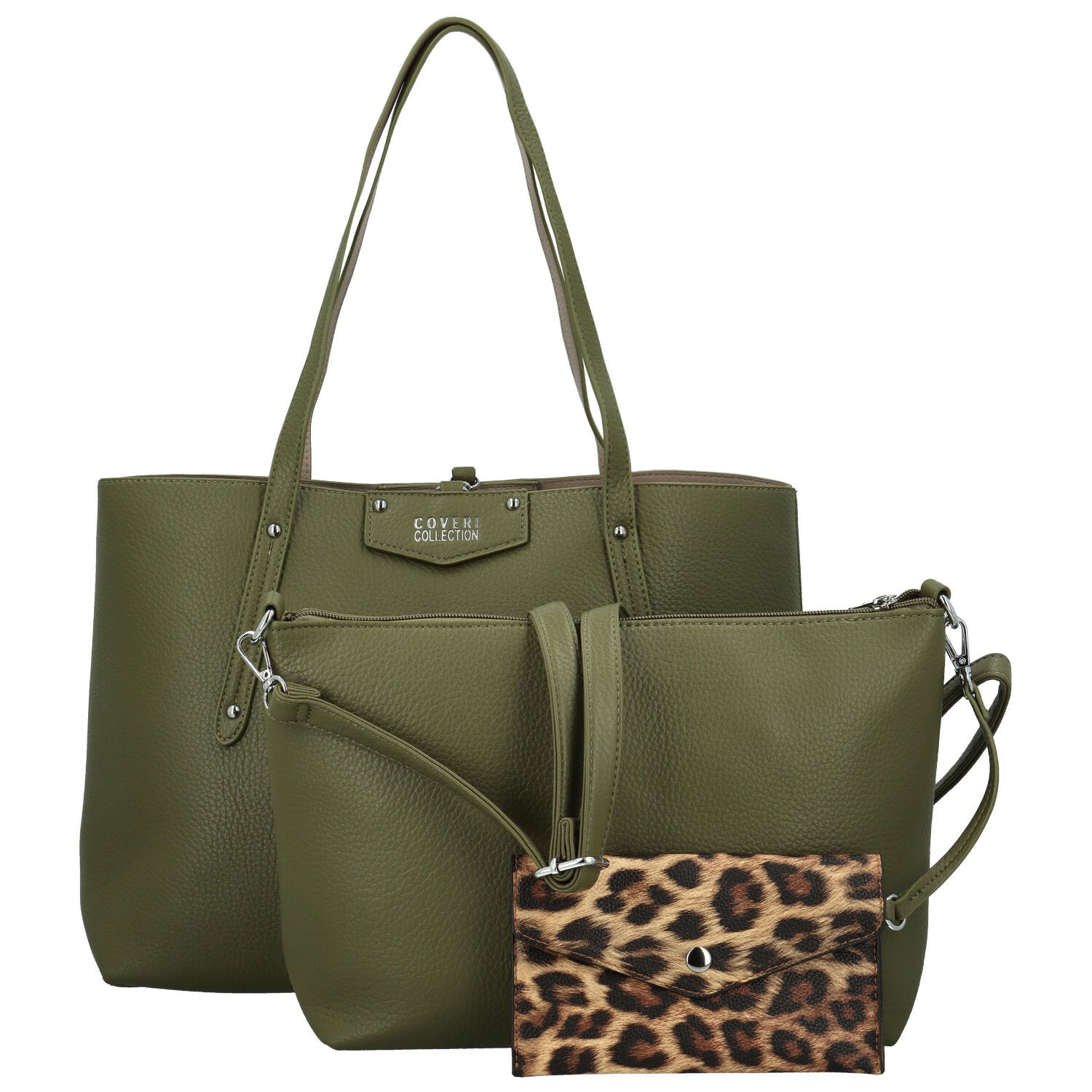 Módní dámský set koženkových kabelek Coveri Elisha, tmavě zelený