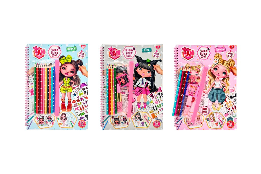 Módní designová kniha I am – vám dovolí obléct nebo udělat make up svým panenkám dle vašich představ a vaší kreativity. Můžete vybírat ze třech různých panenek – Emi, Mona a Emma, každá kniha obsahuje jiné příslušenství – samolepky, tužky, gumu, lepidlo, pastelky …