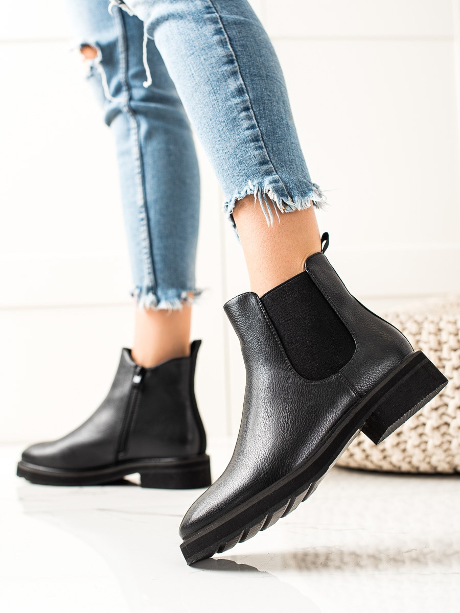 Módní kotníčkové boty dámské černé na plochém podpatku 38