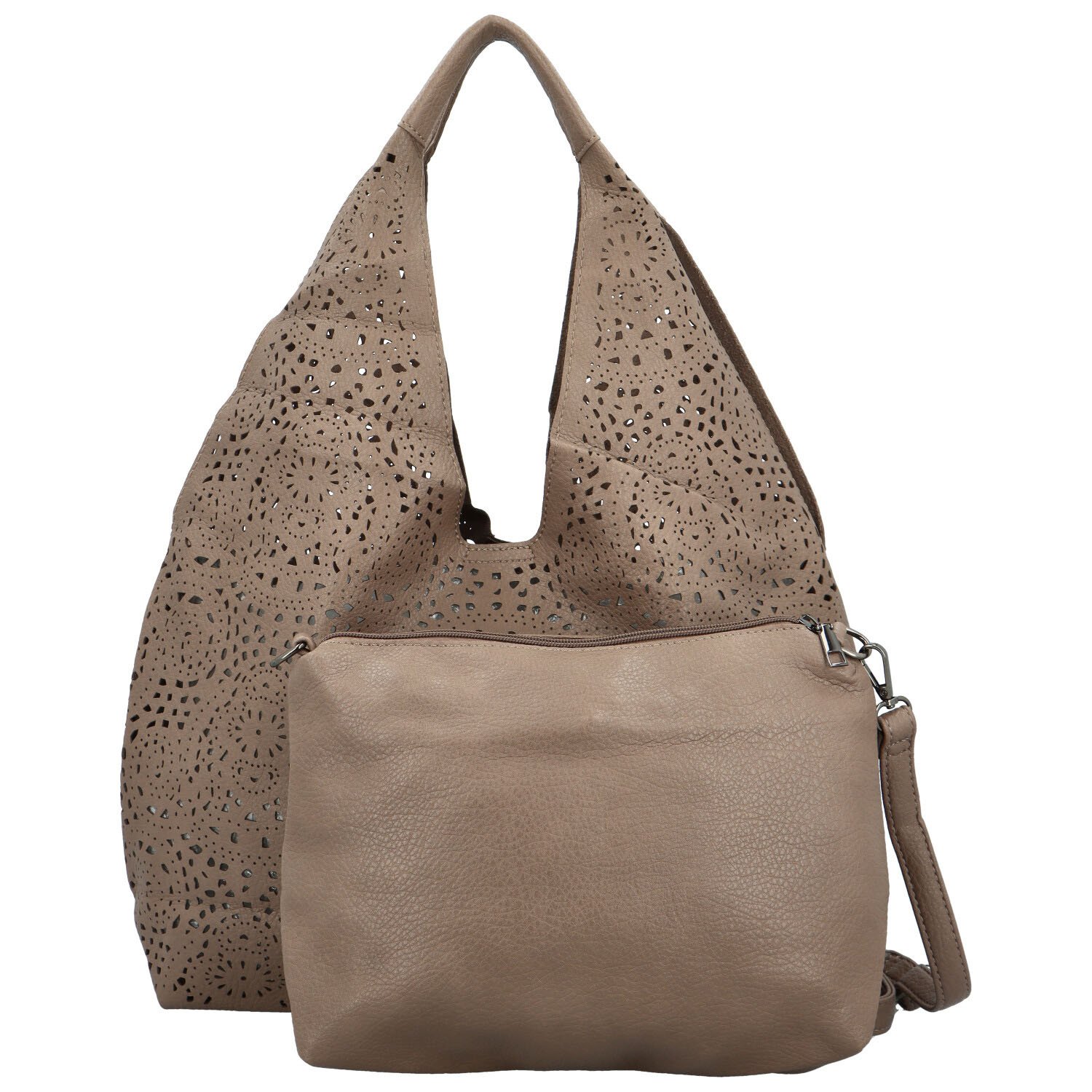Větší kabelka je designově děrovaná a má velmi módní lodičkový střih. Hlavní kapsu zabezpečíte zipem. Menší kabelka je měkčí a uvnitř jsou k dispozici přihrádky na Vaše drobnější věci. Ke kabelce je přídavný popruh s možností regulace délky, pro nošení na rameni.