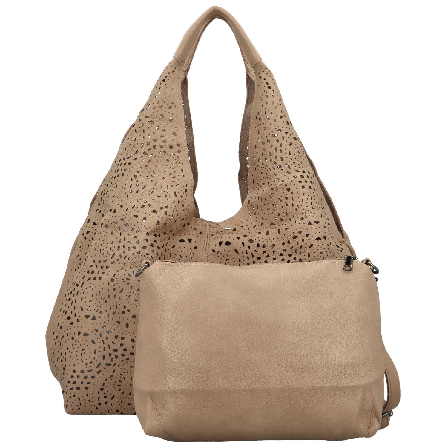 Větší kabelka je designově děrovaná a má velmi módní lodičkový střih. Hlavní kapsu zabezpečíte zipem. Menší kabelka je měkčí a uvnitř jsou k dispozici přihrádky na Vaše drobnější věci. Ke kabelce je přídavný popruh s možností regulace délky, pro nošení na rameni.