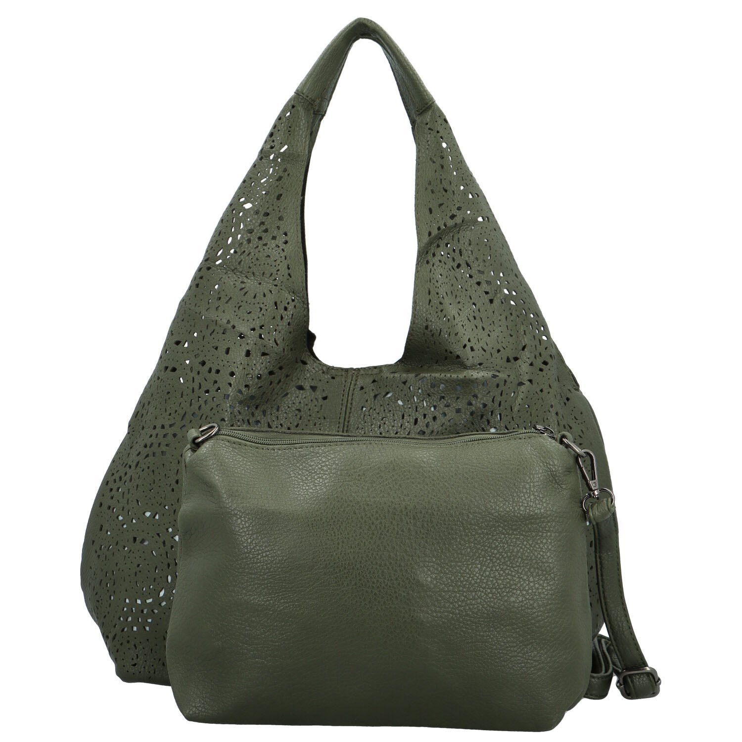 Větší kabelka je designově děrovaná a má velmi módní lodičkový střih. Hlavní kapsu zabezpečíte zipem. Menší kabelka je měkčí a uvnitř jsou k dispozici přihrádky na Vaše drobnější věci. Ke kabelce je přídavný popruh s možností regulace délky, pro nošení na rameni.
