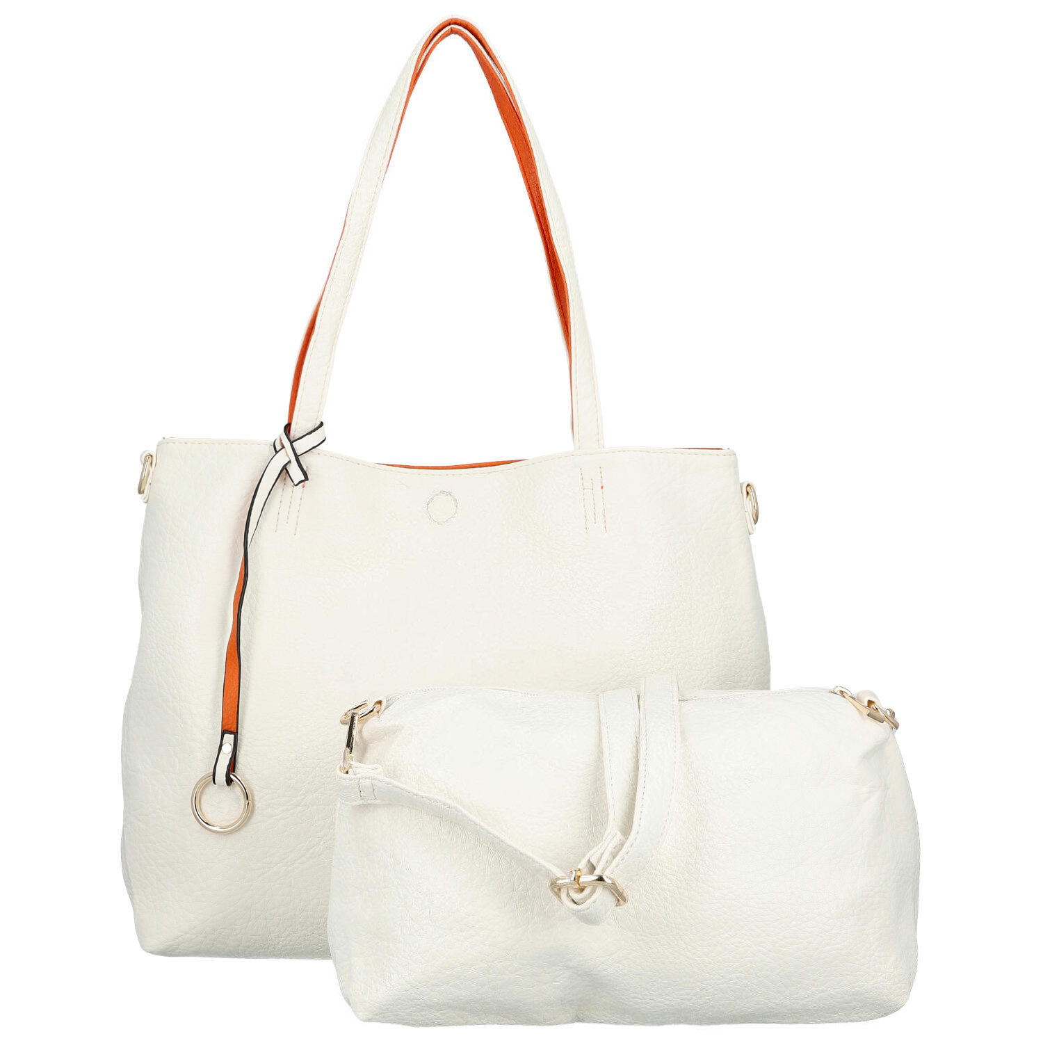 Velká kabelka s dlouhými uchy pohodlně sedne na rameno a uzavírá se praktickým magnetickým zapínáním. Na zadní straně nechybí zipová kapsička pro drobnosti.Součástí setu je i menší crossbody kabelka s nastavitelným přídavným popruhem.