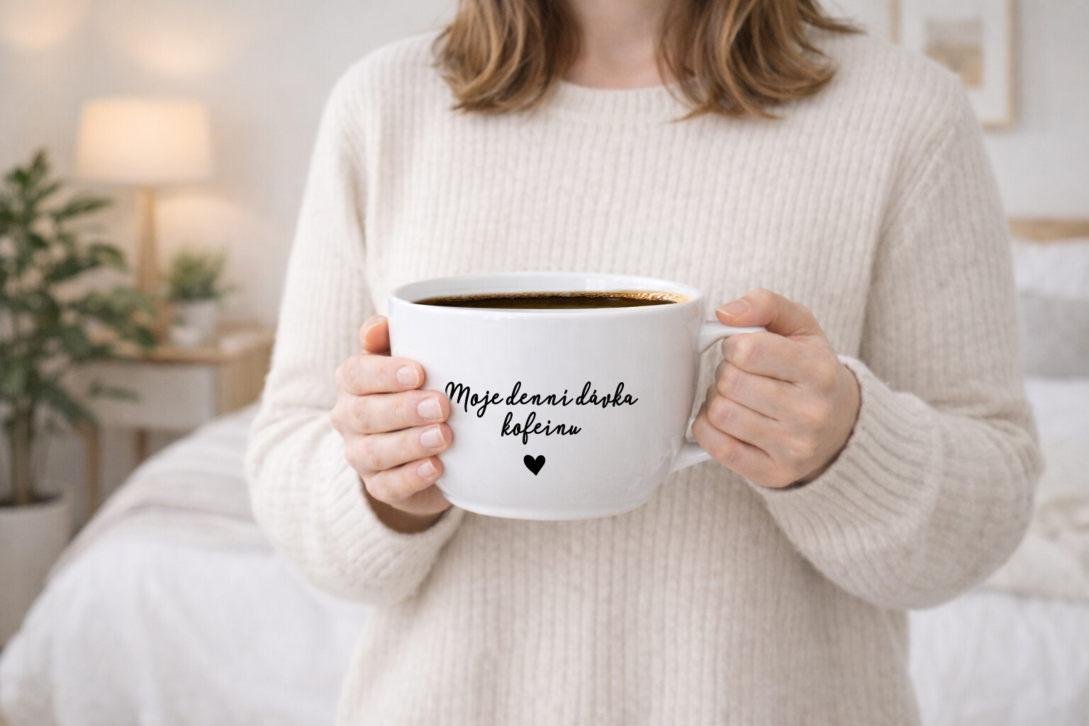 Mega XXL keramický hrnek 1000 ml – „moje denní dávka kofeinu“ Ráno? Jedině s kávou. Hrnek s potiskem „moje denní dávka kofeinu“ přesně vystihuje každodenní realitu všech milovníků kávy. Nalij, vypij, funguj. Jednoduché, upřímné a zatraceně pravdivé. ☕️Kvalitní elegantní bílá keramika ☕️Obrovský objem 1 000 ml ☕️Vtipný potisk