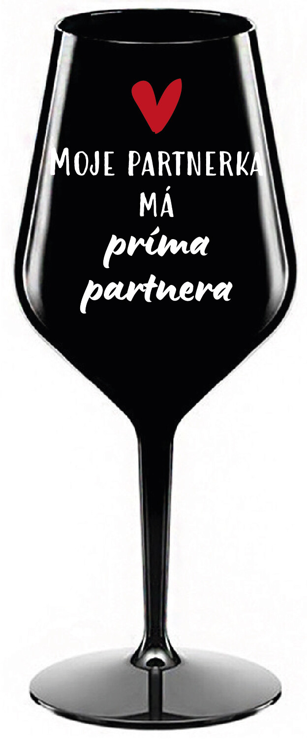 Nerozbitná černá vinná sklenice s motivem MOJE PARTNERKA MÁ PRÍMA PARTNERA je skvělá na zahradu, pláž, výlet, piknik a parádu udělá i při kempování. Jelikož je vyrobená z kvalitního polykarbonátu je de facto nerozbitná. Je to luxusní kousek, s nímž si víno můžete vychutnat prostě kdekoliv. Mají ergonomický tvar, který příjemně padne do ruky a protože je lehká, usnadňuje to její přenášení. Je snadno skladovatelná a lehce se čistí. Díky svému designu si s ní můžete vychutnat doopravdy kdekoliv bezproblémové pití výborného vína. Materiál PP. Vyrobené s láskou v ČR