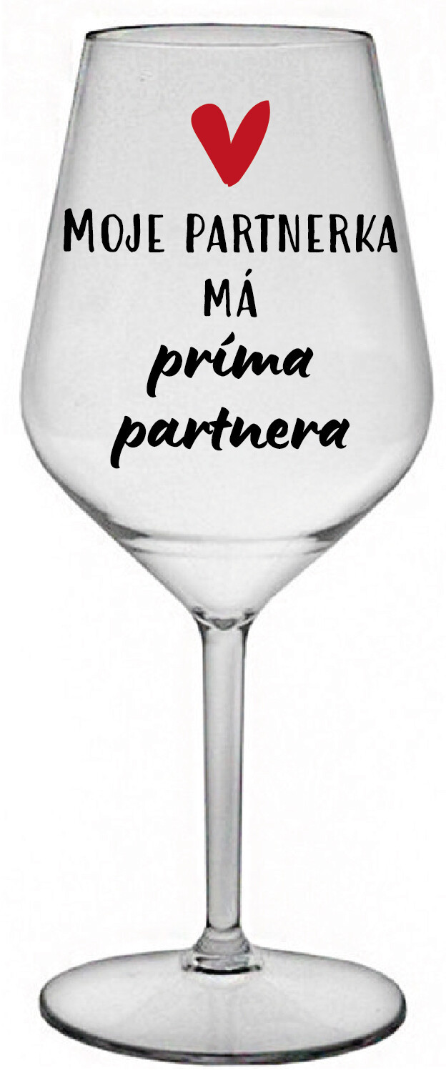Nerozbitná čirá vinná sklenice s motivem MOJE PARTNERKA MÁ PRÍMA PARTNERA je skvělá na zahradu, pláž, výlet, piknik a parádu udělá i při kempování. Jelikož je vyrobená z kvalitního polykarbonátu je de facto nerozbitná. Je to luxusní kousek, s nímž si víno můžete vychutnat prostě kdekoliv. Mají ergonomický tvar, který příjemně padne do ruky a protože je lehká, usnadňuje to její přenášení. Je snadno skladovatelná a lehce se čistí. Díky svému designu si s ní můžete vychutnat doopravdy kdekoliv bezproblémové pití výborného vína. Materiál PP. Vyrobené s láskou v ČR