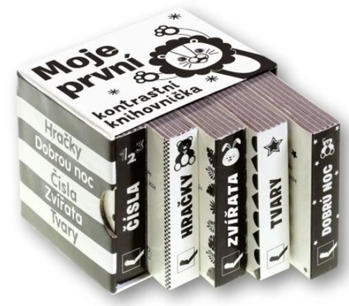 Objevte vysoce kontrastní černobílá leporela v této praktické knihovničce. Každé leporelo obsahuje výrazné obrázky čísel, zvířat, tvarů či předmětů, které nejmenším dětem napomáhají s přirozeným vývojem a raným učením. Užijte si s dětmi zábavu při prohlížení a objevování okolního světa! Miminka si otáčením a manipulací rozvíjí motoriku a koordinaci pohybu prstíků.