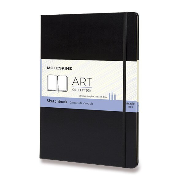 Skicář vhodný na kresby, skici i malby, s pevnou, ve hřbetu šitou vazbou v kartonových deskách, obepnutý pružnou páskou proti samovolnému otevírání. Skicář je vybaven pořadačem poznámek, který je vyroben z tkaniny a kartonu, textilní záložkou a letákem s historií Moleskine. Papír slonovinové barvy s gramáží 165 g/m2, neobsahuje kyseliny. Rozměr: 29,7 x 42 cm, 48 listů