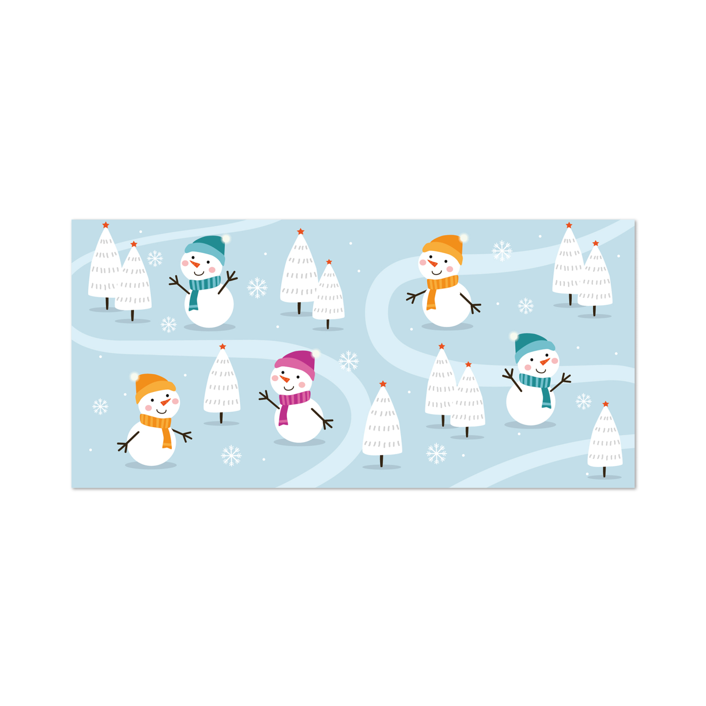 Vánoční obálka na peníze s motivem roztomilých sněhuláků. Uvnitř kapsy na peníze najdete kartu pro dopsání vlastního vzkazu. Rozměry: 18,8 × 8,8 cm