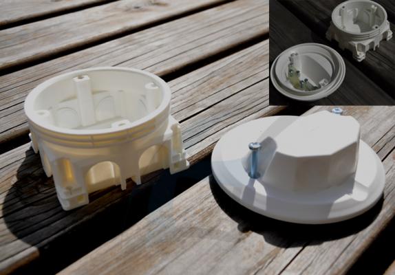 Krabička se skládá z dolní části (pro svorkovnici) a horním krytem opatřeným silikonem.