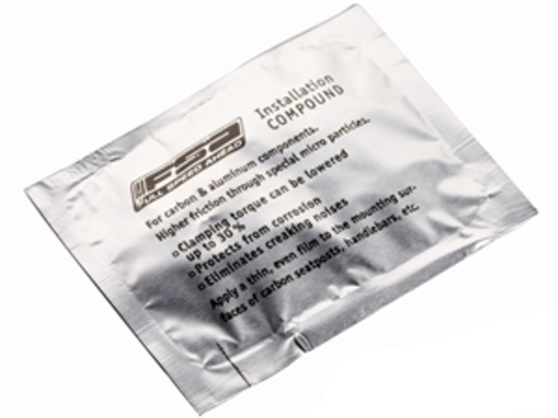 Montážní pasta FSA, 5g Montážní pasta určená pro montáž karbonových a duralových komponentů. Díky svému složení zvyšuje tření mezi povrchami, čím je možné použít nižší utahovací momenty šroubů až o 30% a má antikorozní vlastnosti. Hmotnost 5 g.