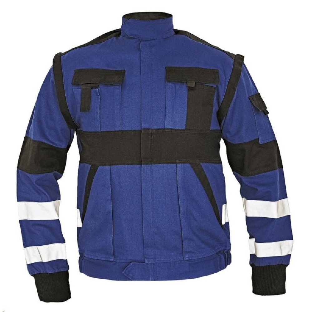 Montérková bunda MAX REFLEX 2v1 modro-černá 260g/m2 - inovovaná verze klasické kolekce MAX přidáním reflexních pruhů ve spodní části rukávů a na zadním díle bundy - zajistí maximální bezpečí při práci i za snížené viditelnosti - odnímatelné rukávy na zip Materiál: 100% bavlna, twill, 260g/m2 Barva . modrá-černá Velikosti: 44-64