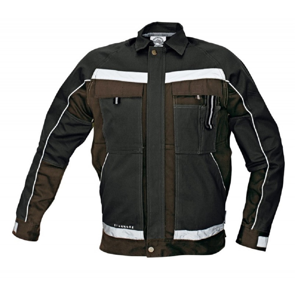 Montérková bunda, moderní střih, 275 g/m2, reflexní doplňky. Barva: hnědá Velikost: 48-62 Materiál: 100% bavlna