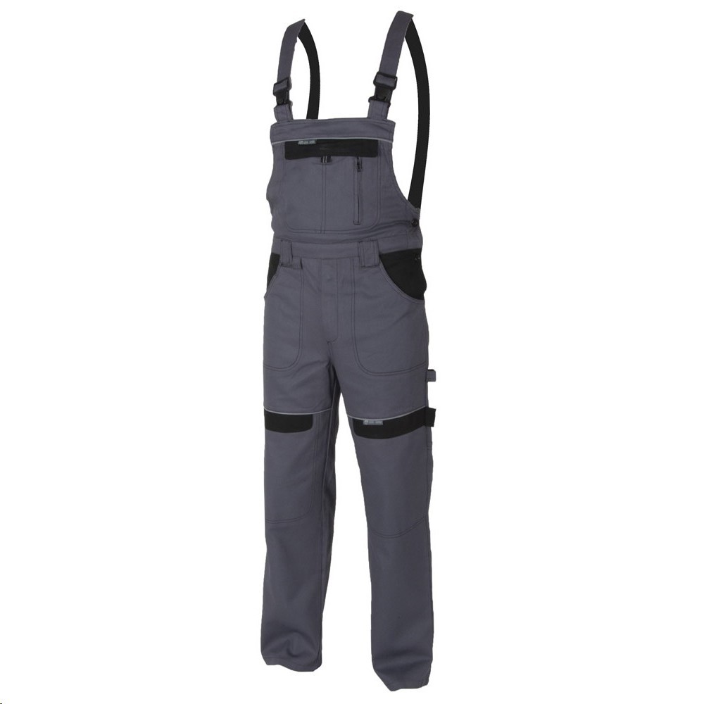 Montérkové kalhoty COOL TREND H8404 s laclem šedo-černé • klasické montérkové kalhoty s laclem sportovního střihu • zapínání na knoflíky na levém boku • guma v pase pro pohodlné nošení • sedlo a dvě zadní kapsy • zesílená kolena • boční multifunkční kapsy na nářadí na nohavicích • elastické šle • na laclu multifunkční kapsa a prostor pro potisk firemním logem • reflexní doplňky • materiál: 100% bavlna, 260 g/m2 • barva: šedo-černé • velikosti: 46 - 66