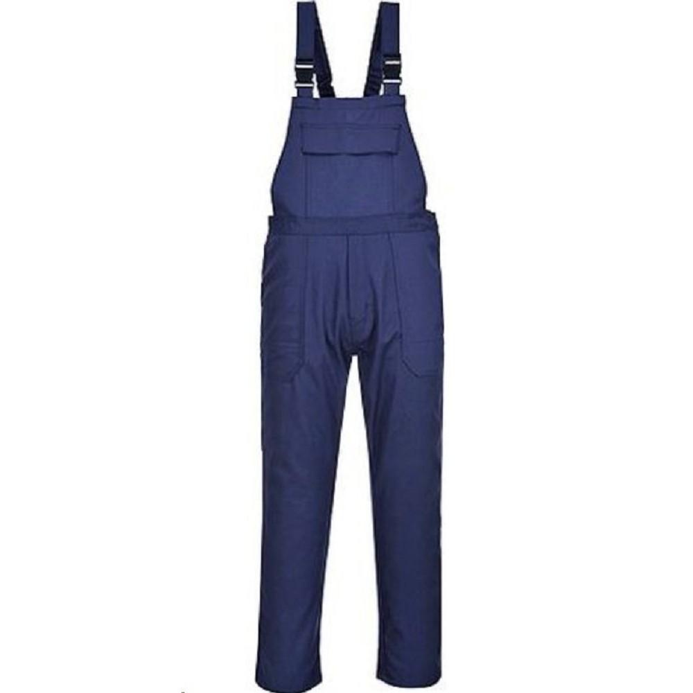 Montérkové kalhoty laclové PROBAN nehořlavá úprava. Pracovní oblek se sníženou hořlavostí Proban. Oděv je vhodný pro pracovníky, kteří svařují nebo jsou vystaveni teplu v úrovni A, B1 (konvekční teplo),C1 (sálavé teplo), proti malým rozstříknutým částicím roztaveného kovu, krátkodobému styku s plamenem a ultrafialovému záření. Je atestován -atesty jsou platné pro ČR a EU. Tento oděv lze až 50x prát aniž dochází ke ztrátě funkčí účinnosti. Tkanina je 100% bavlna s keprovou vazbou a nehořlavou úpravou Proban, má gramáž 320 g/m2, je vysrážená, je pevná v tahu a v trhání. Tuzemská výroba. Barva středně modrá.