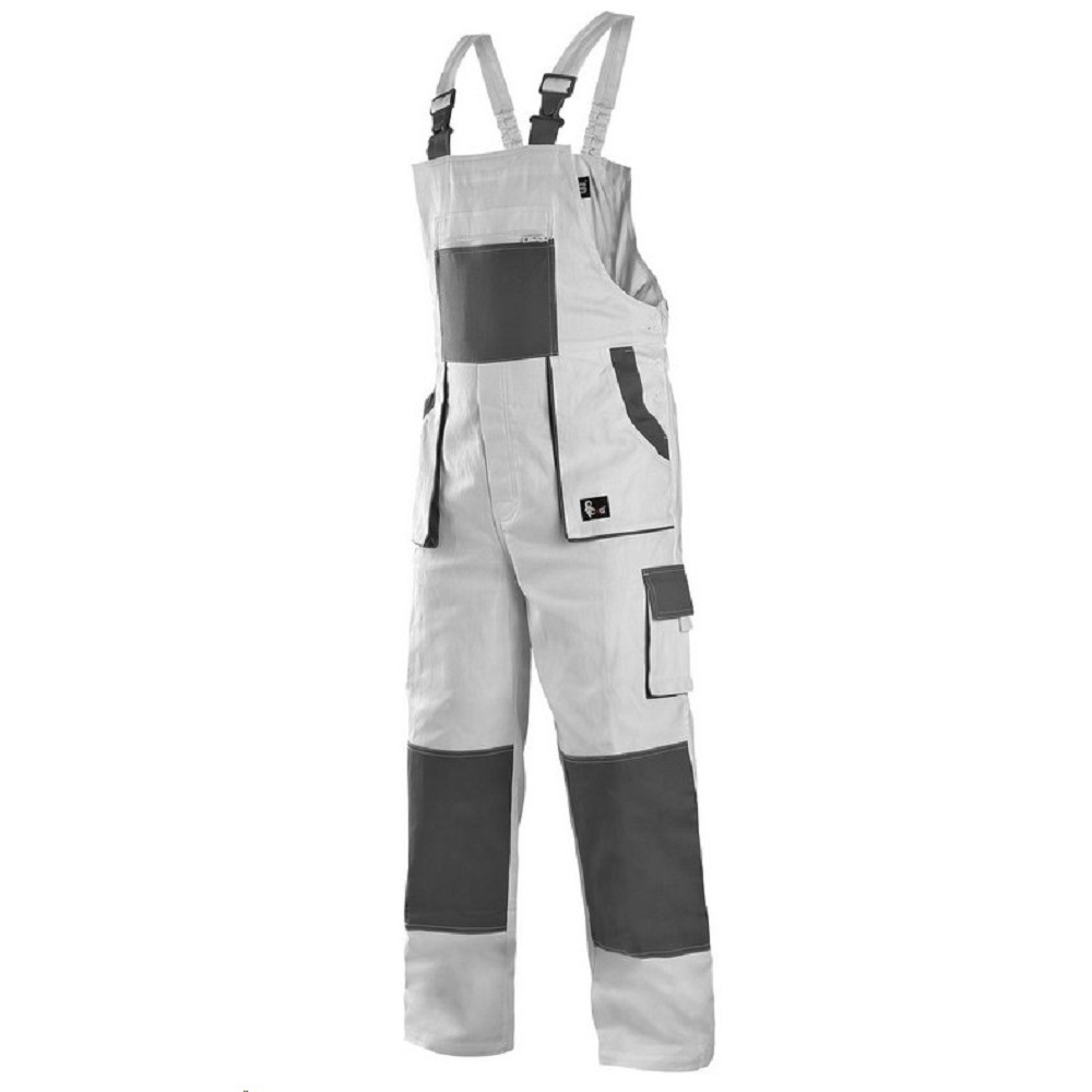 Montérkové kalhoty LUXY ROBIN s laclem 100% bavlna 260g/m2 bílo-šedé • pánské kalhoty s náprsenkou • zdvojená kolena, přední našité kapsy • náprsní kapsa na zip • boční kapsy na metr a na mobil • pas v zadní části do gumy • Barva: bílo-šedé • Materiálové složení: kepr 100% bavlna • Gramáž: 260g/m2 • Normy: EN ISO 13688 • Velikost: 46-68